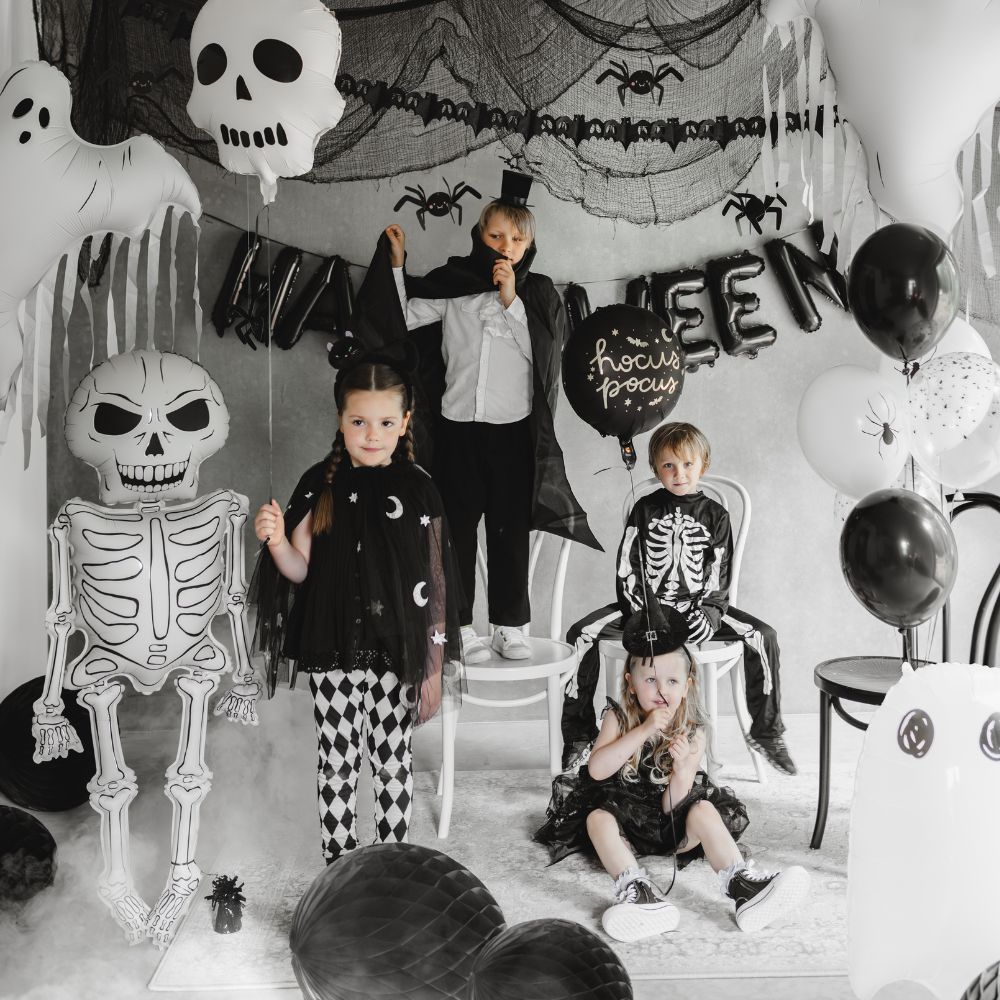 Ten ogromny balon foliowy w kształcie kościotrupa to świetny sposób na stworzenie mrocznego, ale jednocześnie zabawnego klimatu podczas halloweenowej imprezy. Dzięki swoim imponującym rozmiarom przyciąga uwagę i staje się centralnym punktem dekoracji. Możesz go ustawić w salonie, na przyjęciu w szkole czy w ogrodzie – wszędzie wywoła zachwyt i uśmiech, a dzieci pokochają jego zabawny wygląd. To idealny pomysł, by dodać odrobinę strasznej, a jednocześnie wesołej atmosfery.