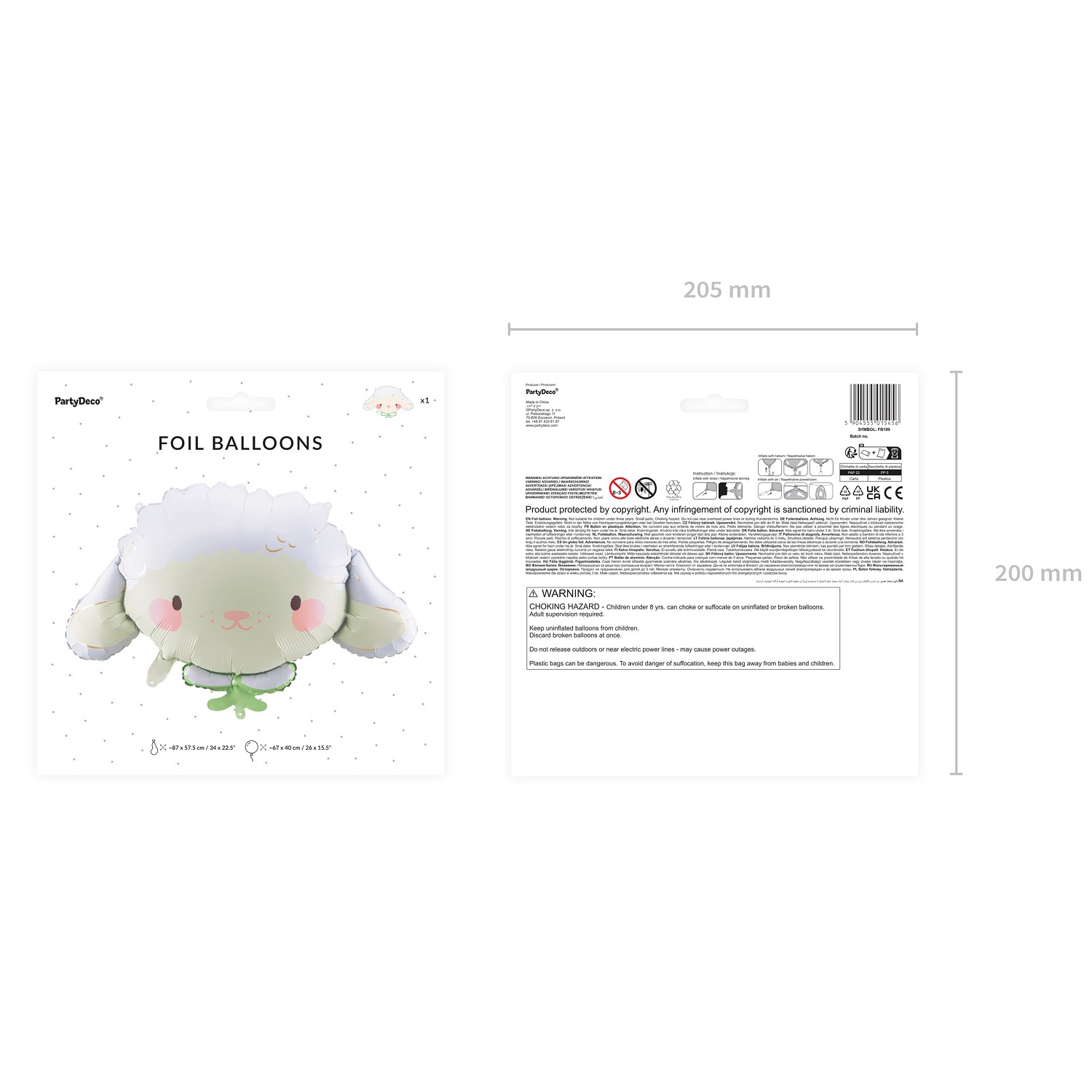 Balon foliowy Party Deco w wersji: Owieczka 87 x 57,5 cm