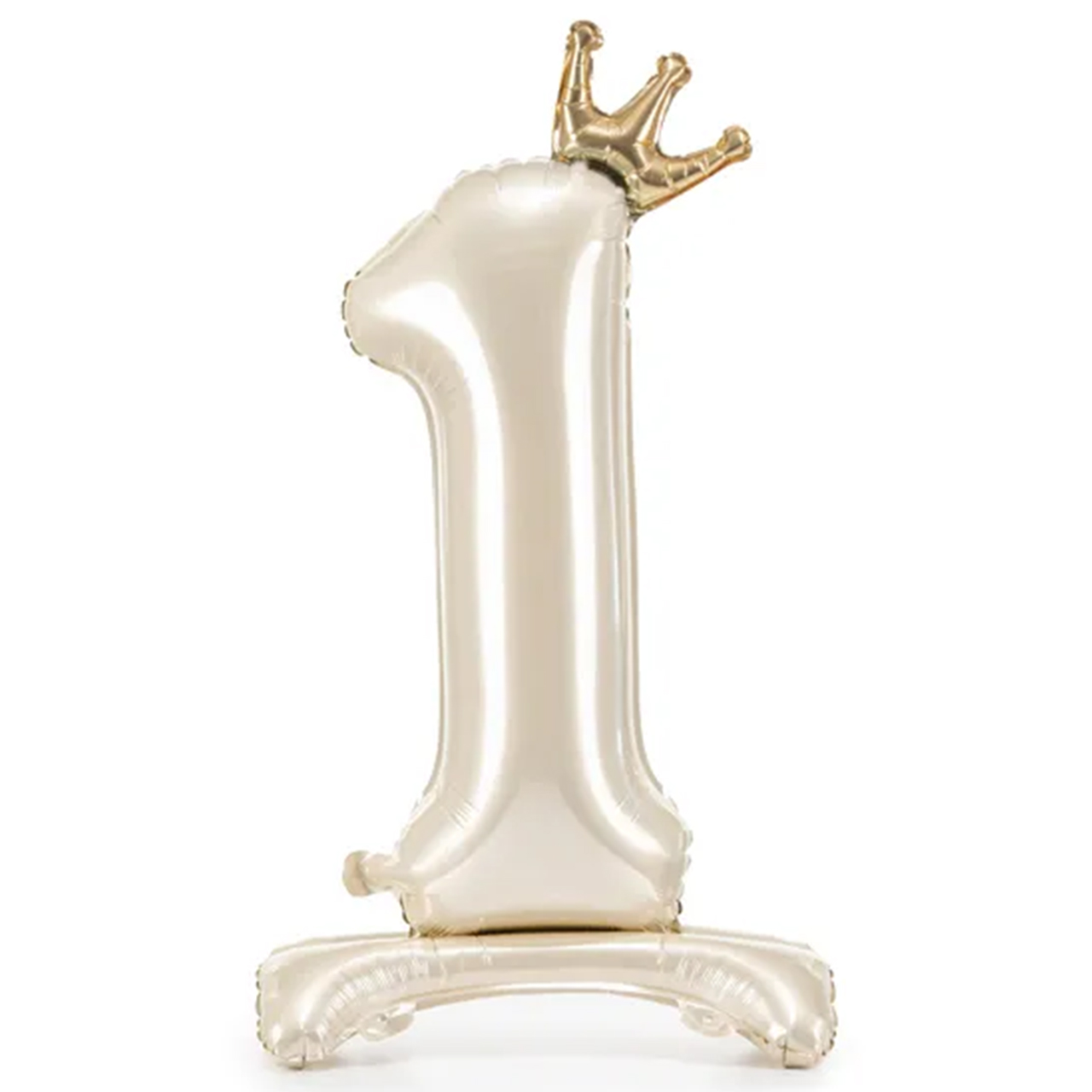 Stojący balon foliowy Party Deco w wersji: Cyfra "1" Jasny krem 81 cm