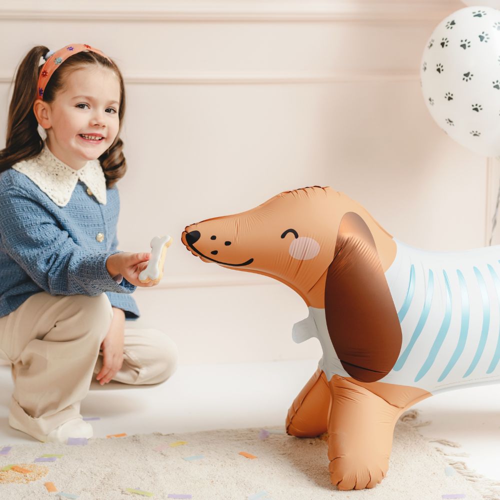 Stojący balon foliowy matowy Jamnik marki Party Deco. Wymiary przed napompowaniem 96 x 65 cm (37.8 x 25.6''), wymiary po napompowaniu 89 x 58 cm (35.0 x 22.8''). Do napompowania powietrzem. Zestaw zawiera słomkę oraz Kartę właściciela psa do samodzielnego wypełnienia. Balon jest samouszczelniający się.
