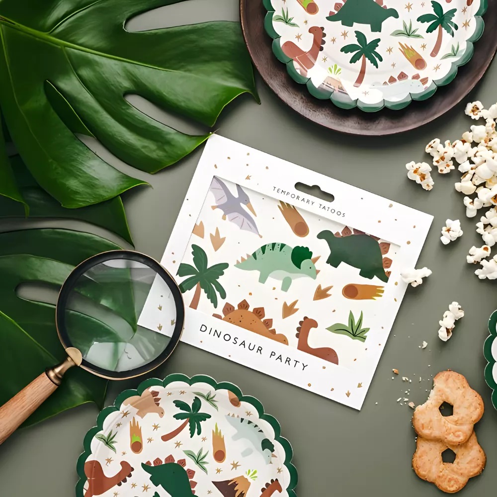 Zestaw zmywalnych tatuaży z motywem dinozaurów - obowiązkowy element każdej kolekcji urodzinowej!