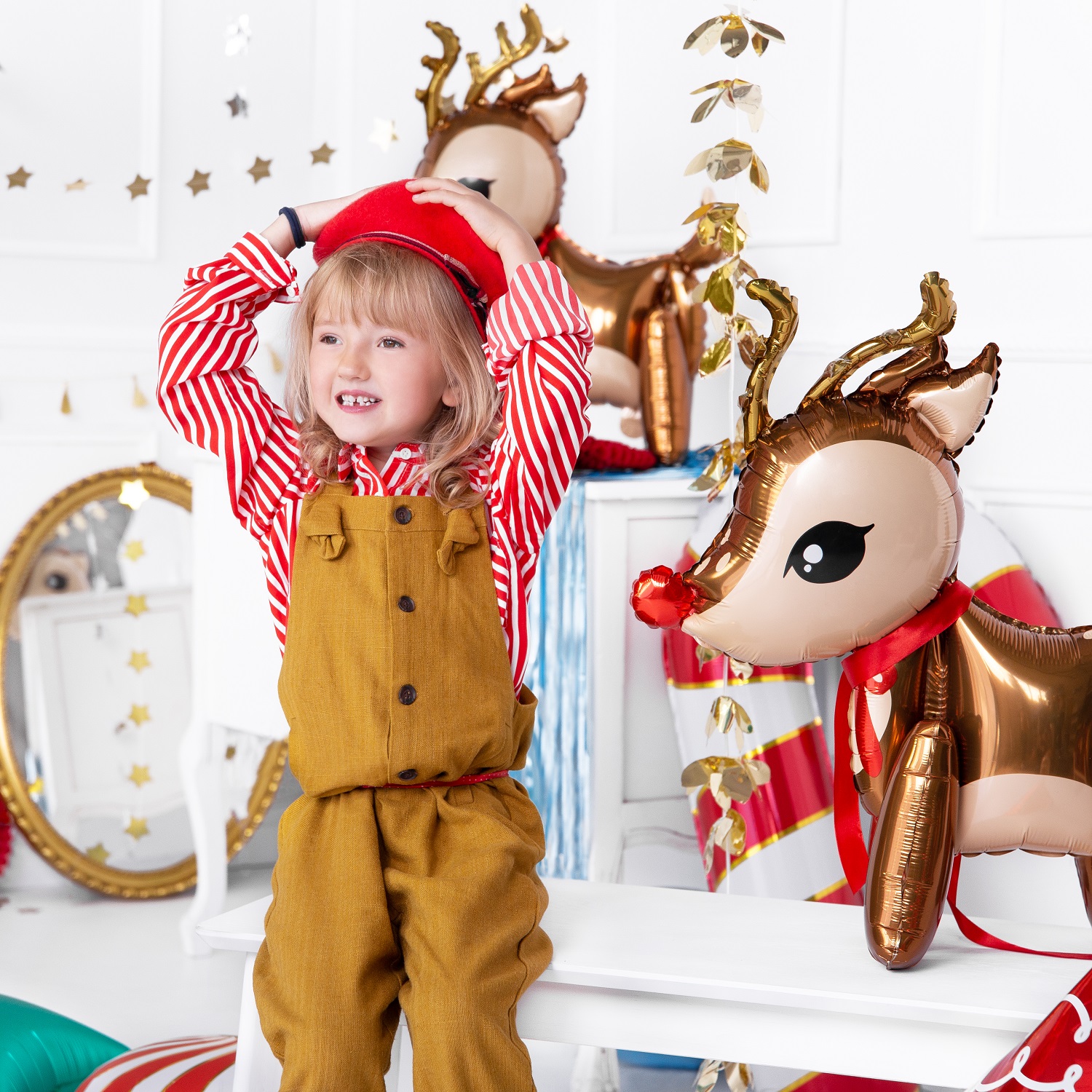 Błyszczący balon foliowy w kształcie renifera. Świetnie sprawdzi się jako dekoracja na Święta Bożego Narodzenia lub dodatek do prezentu Mikołajkowego. Do napompowania powietrzem.