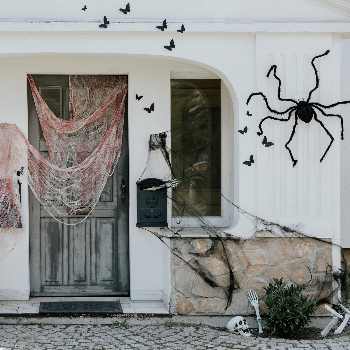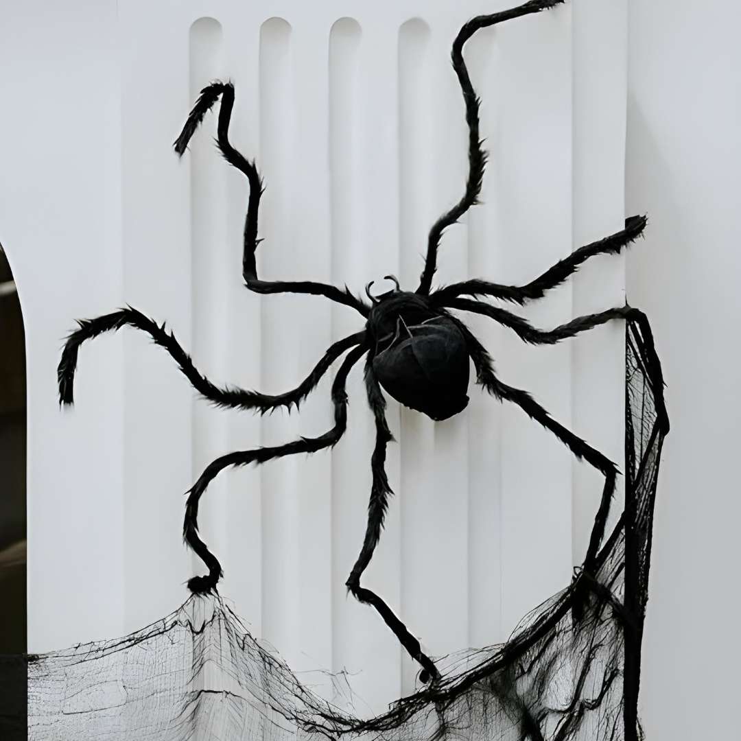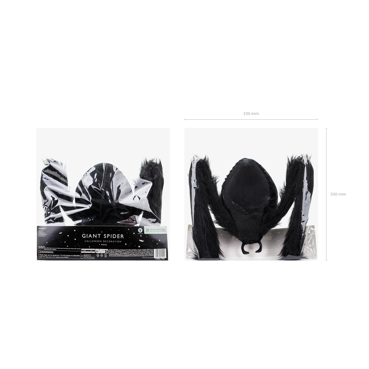 Dekoracja Pająk w kolorze czarnym to realistyczna i imponująca ozdoba, idealna do użytku zarówno wewnątrz, jak i na zewnątrz. Korpus pająka ma wymiary ok. 21,5 x 9 x 13 cm, a jego długie nogi mierzą ok. 60 cm. Po pełnym rozłożeniu dekoracja osiąga rozmiary ok. 103 x 75 x 9 cm, tworząc efektowną i przyciągającą uwagę aranżację. Doskonale sprawdzi się na Halloween i inne okazje tematyczne.
