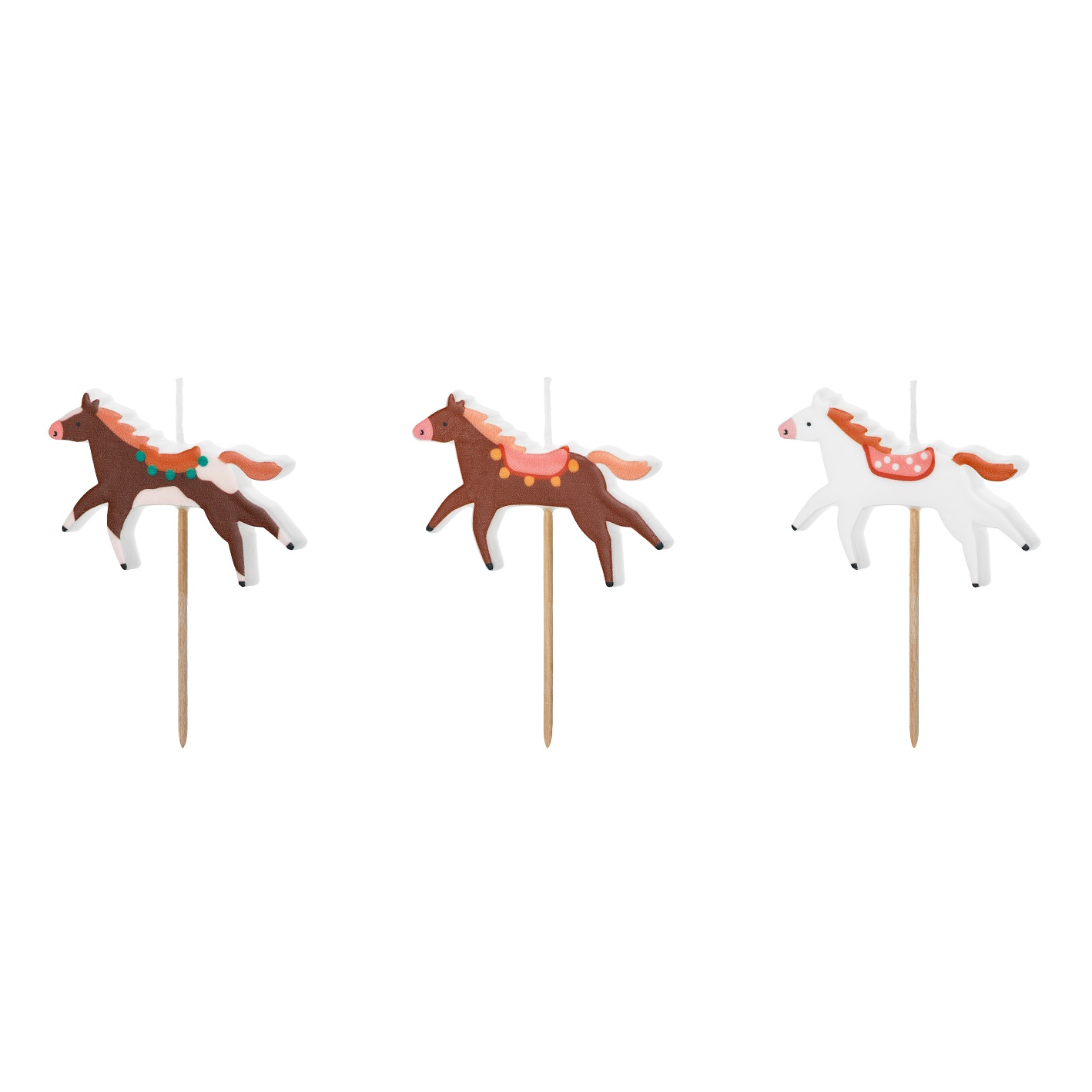 Dekoracje do muffinek - Konie, zestaw zawiera 6 elementów (3 wzory), mix kolorów, wysokość ok. 13 cm. Produkt do samodzielnego złożenia.
