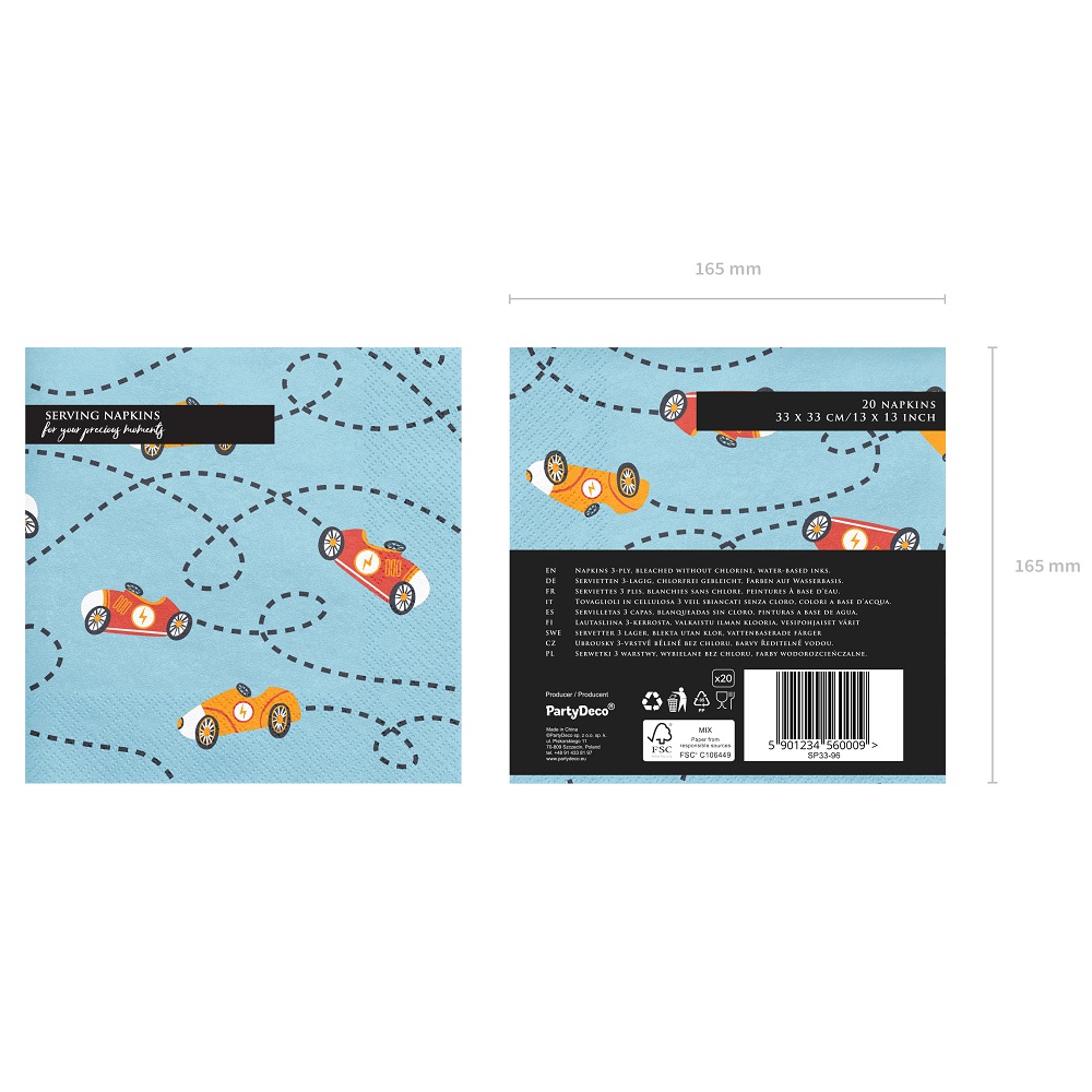 Papierowe serwetki z motywem samochodów wyścigowych to oryginalny element aranżacji przyjęcia. W połączeniu z tematycznymi kubeczkami, papierowymi talerzykami i topperkami dadzą efekt, który oczaruje każdego chłopca.
