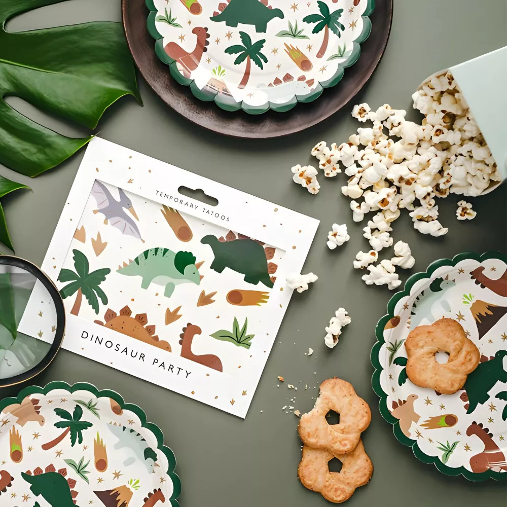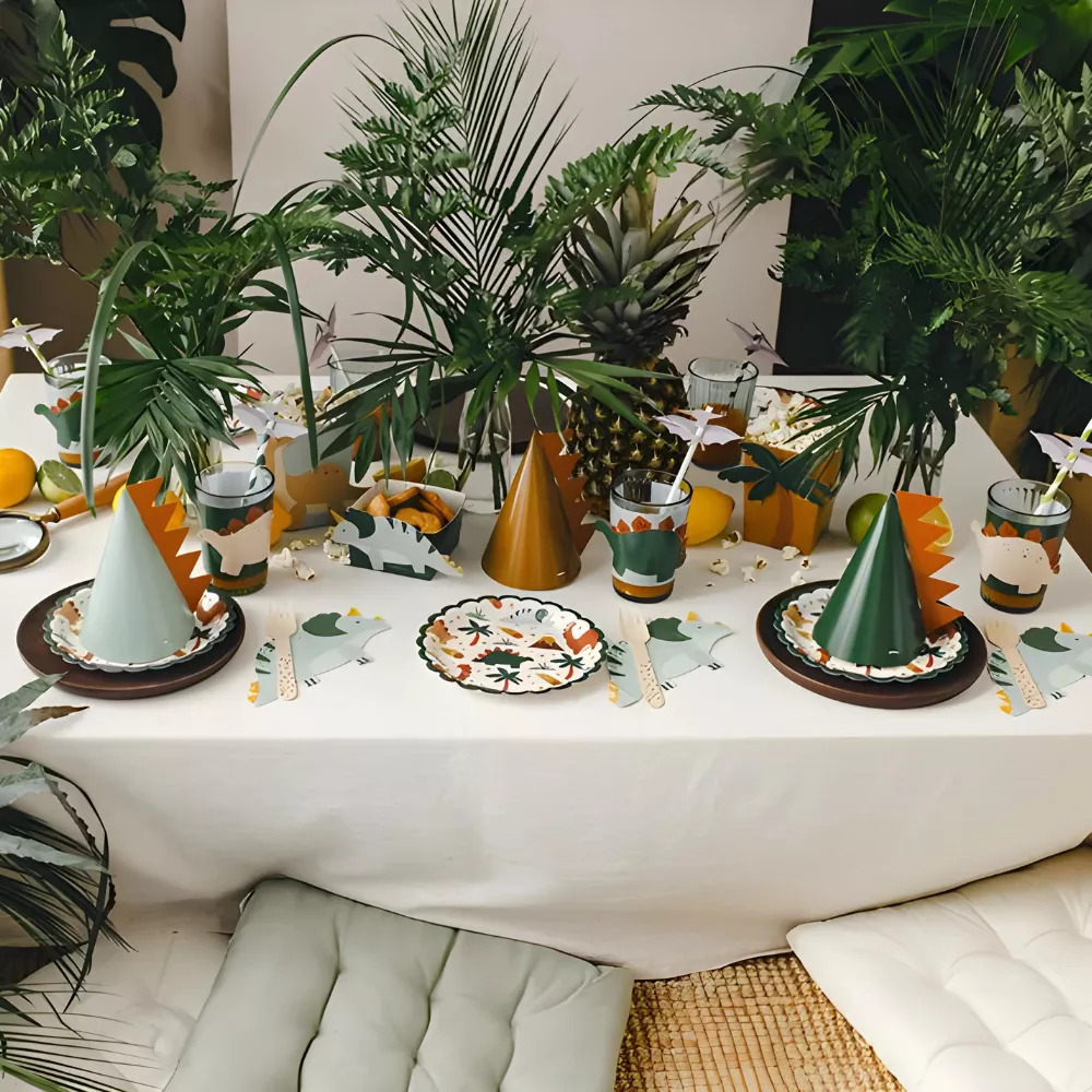 Dzieci, zwłaszcza chłopcy, szaleją za dinozaurami! Papierowe talerzyki w połączeniu z innymi ozdobami z kolekcji Dino Fun pozwolą przygotować dla nich super dekorację stołu na urodziny i niezapomniane party! Kolorystyka Earthy Jungle jest stonowana i przyjazna dla najmłodszych, ale także pięknie komponuje się z naturalnymi roślinami.
