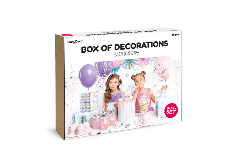 Zestaw dekoracji na przyjęcie - Jednorożec od Party Deco zawiera 35 elementów które pozwolą na stworzenie wspaniałej imprezy z motywem jednorożca. Z zestawem od Party Deco jesteście już praktycznie gotowi na zabawę!