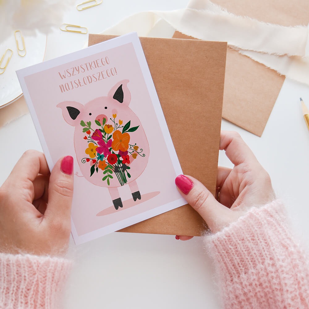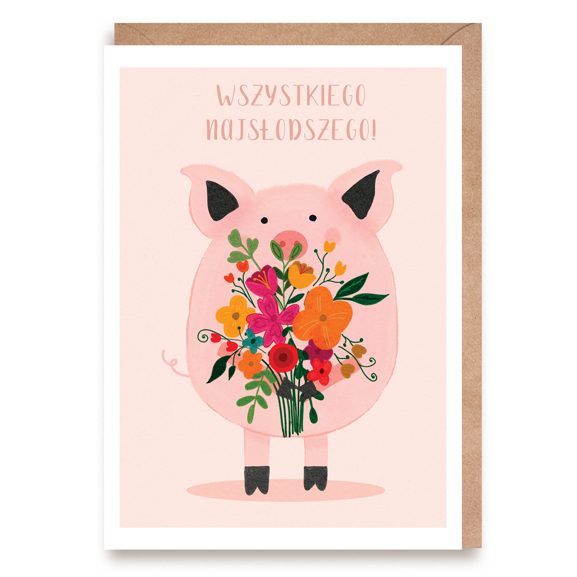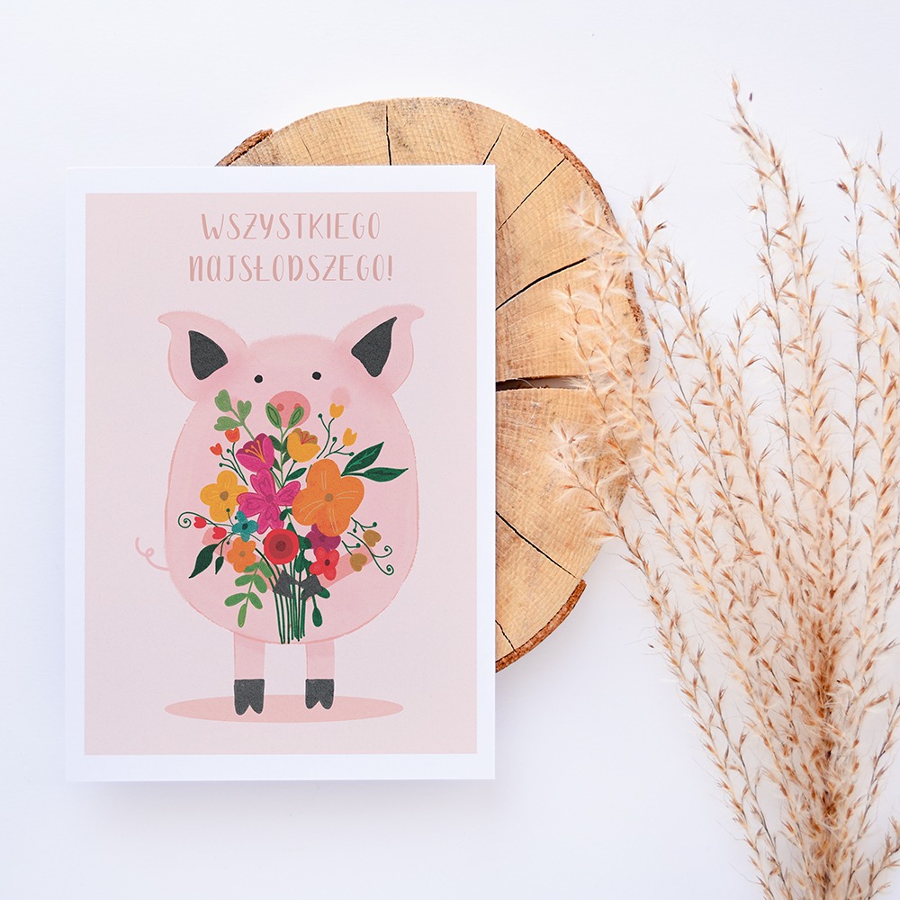 Kartka okolicznościowa ze świnką Cardie - Wszystkiego najsłodszego!