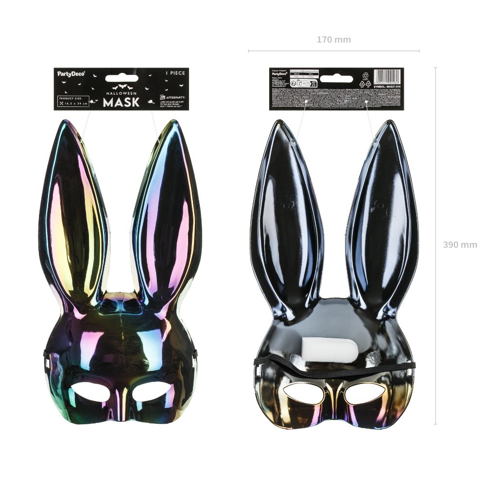 Maska Królik w kolorze czarnym opalizującym to idealny wybór na imprezy tematyczne, Halloween czy bal maskowy. Dzięki swojej niebanalnej formie z długimi uszami i połyskującej powierzchni, przyciąga wzrok i dodaje tajemniczości każdemu przebraniu. To prosty sposób, aby wyróżnić się w tłumie i stworzyć oryginalny, niepowtarzalny look.