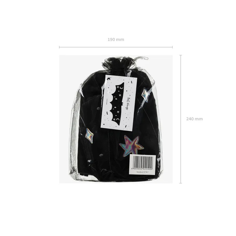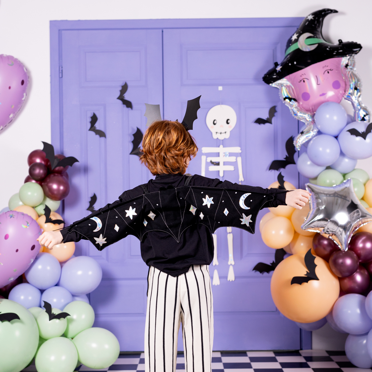 Skrzydła nietoperza w kolorze czarnym ze srebrnymi elementami dla dzieci w wieku 3-7 lat - sprawdzą się zarówno dla chłopca i dziewczynki. Przygotuj się na Halloween w niepowtarzalny sposób - wybierz efektowne przebranie i nadaj swojemu wnętrzu niezapomniany klimat strachu i zabawy.