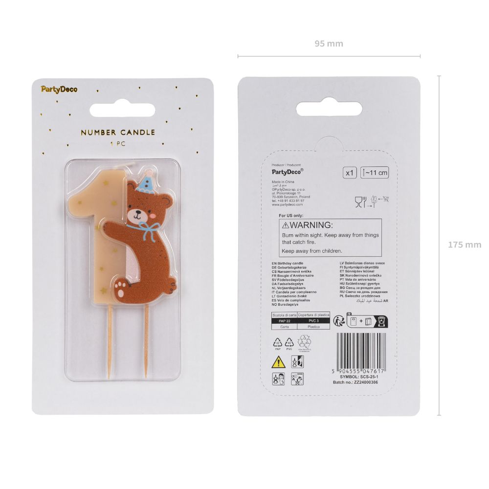 Świeczka urodzinowa marki Party Deco w kształcie uroczego misia z cyfrą "1" to idealny dodatek do tortu, który nada uroczystości wyjątkowego charakteru. Doskonale sprawdzi się podczas pierwszych urodzin, wprowadzając radosny i przyjazny akcent do dekoracji. Świeczka o wysokości 7 cm jest starannie wykonana, z dbałością o detale, dzięki czemu zachwyca zarówno dzieci, jak i dorosłych.