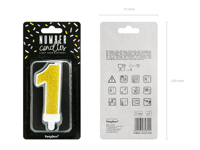 Świeczka urodzinowa Cyferka 1 w kolorze złotym brokatowym. Rozmiar około 7 cm. Sprawdzi się na każdym torcie urodzinowym.