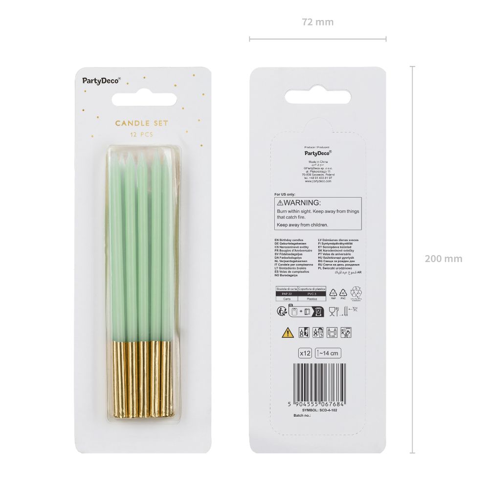 Cechy Świeczek urodzinowych gładkich, jasnozielonych Party Deco: