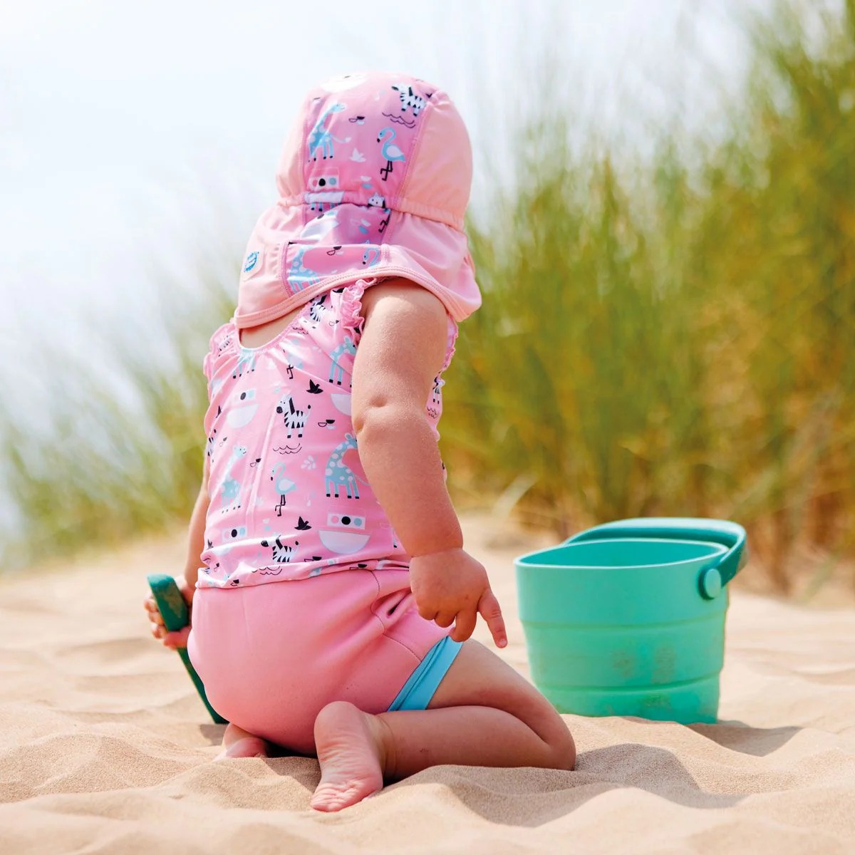 Dziecko ma możliwość nosić czapkę również w wodzie. Daszek pomaga chronić oczy przed słońcem, a długi materiał z tyłu zakrywa kark, zapewniając dzieciom chłód i ochronę przed promieniowaniem UV. Dodatkowo posiadają filtr UPF 50+ zapobiegający poparzeniom słonecznym. Idealne na wiosenne i letnie wyjazdy.