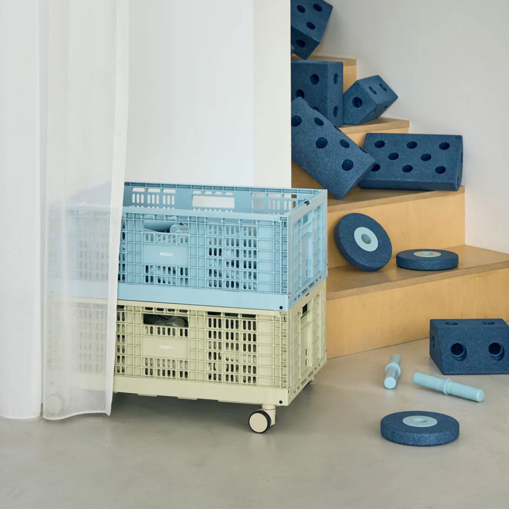 Skrzynka MODU pomaga utrzymać porządek w pokoju dziecka i zachęca do samodzielności – maluch może łatwo posegregować zabawki dzięki dołączonym etykietom. Gdy nie jest używana, można ją złożyć na płasko, co pozwala zaoszczędzić miejsce. Dodatkowo, po zamontowaniu kółek MODU (sprzedawanych osobno), zamienia się w mobilny pojemnik, który dziecko może swobodnie przesuwać z pokoju do pokoju.