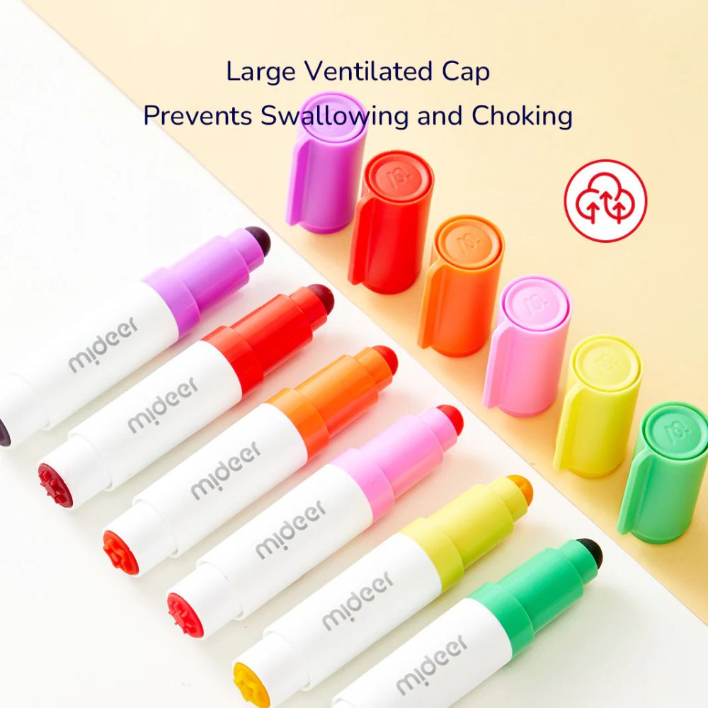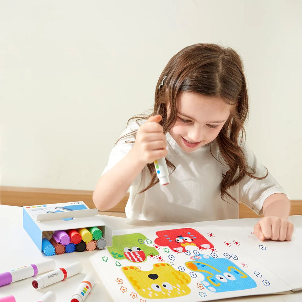 Rozbudź kreatywność dzięki temu unikalnemu i innowacyjnemu narzędziu do rysowania, które łączy zabawę pieczątkami i kolorowanie w jednej formie. Zaprojektowany z myślą o najmłodszych, marker z zaokrągloną końcówką jest bezpieczny i łatwy w użyciu, zachęcając do odkrywania nowych możliwości artystycznych. Idealny do twórczej zabawy solo lub wspólnego spędzania czasu całą artystyczną rodziną. Dodatkowy atut? Jest zmywalny, więc sprzątanie po zabawie to żaden problem!