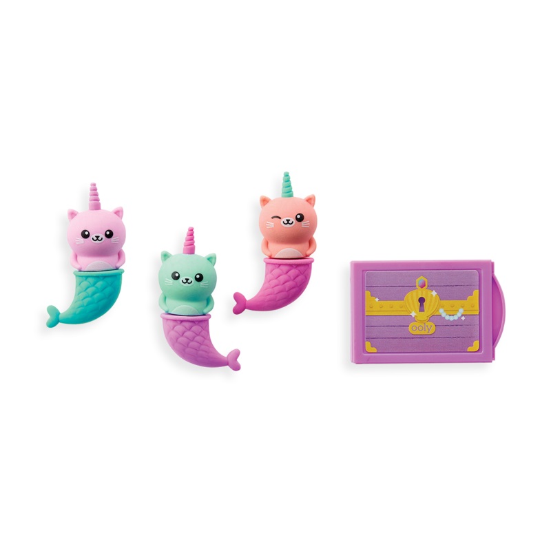 Nie musisz nurkować głęboko w morzu, aby odkryć Kocie Syrenki i ukryty skarb - wystarczy otworzyć paczkę z gumkami do ścierania Ooly! Gumki doskonale poradzą sobie z usuwaniem grafitowych błędów ołówkowych. Dodatkowo czeka Cię niespodzianka! Pudełeczko na skarby, w którym kryje się..? Musisz zdobyć zestaw aby się przekonać co jest w środku!