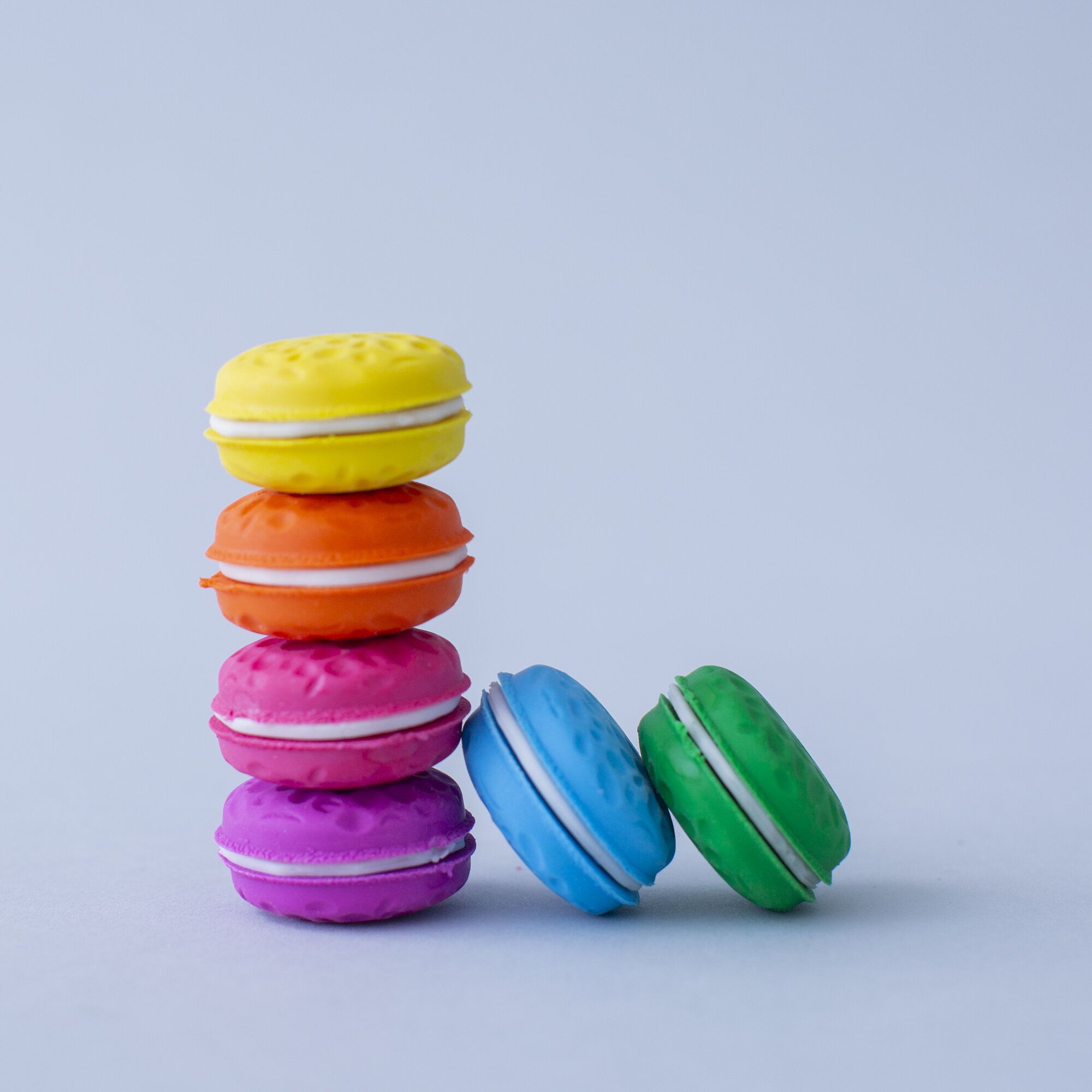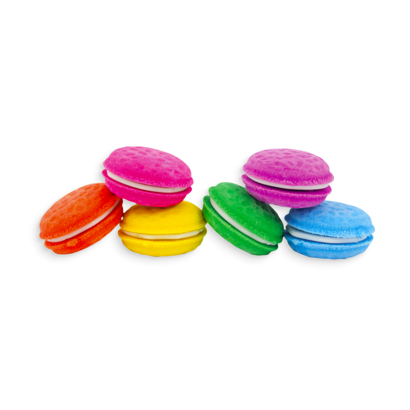 Gumeczki dla łakomczuchów. Pysznie wyglądające gumki, jakby prosto z francuskiej cukierni. Ten słodki zestaw gumek do ścierania zawiera 6 kolorowych makaroników o zapachu wanilii. A dla dodatkowej zabawy, gumeczki można rozłożyć, a ich kolorowe części można mieszać mieszać między sobą tworząc nowe różnokolorowe makaroniki. Słodkie Makaroniki Pachnące Gumki do Ścierania sprawią, że dzień w szkole, w domu lub w pracy będzie o wiele słodszy.