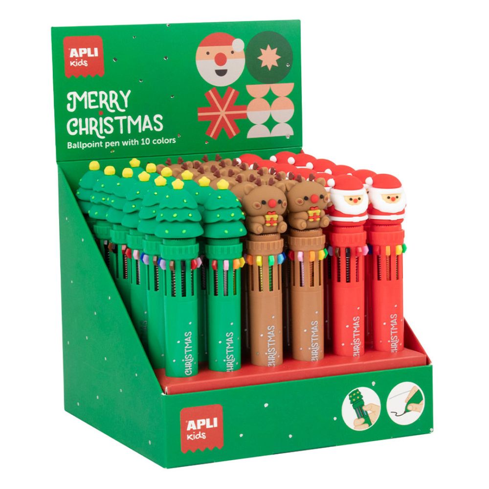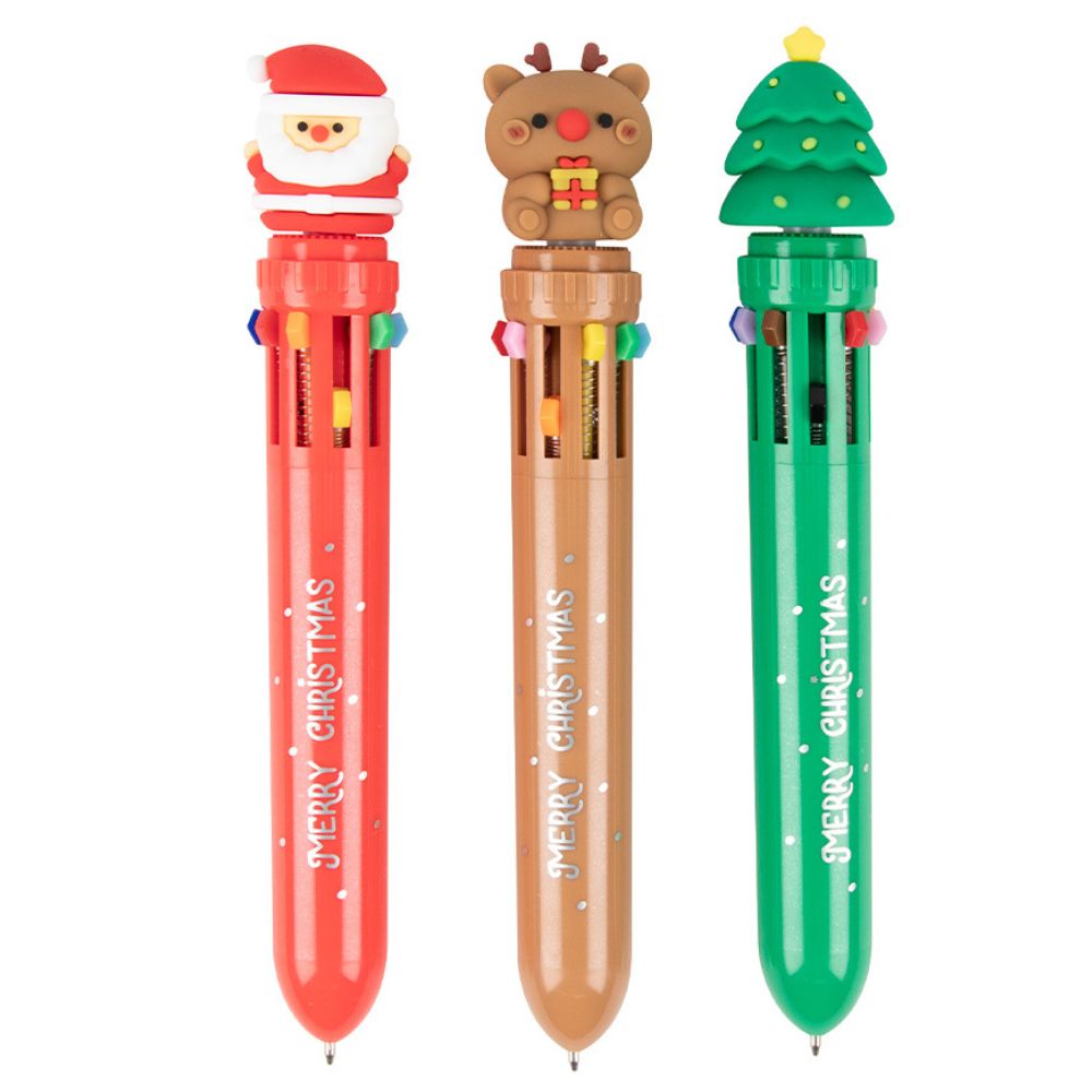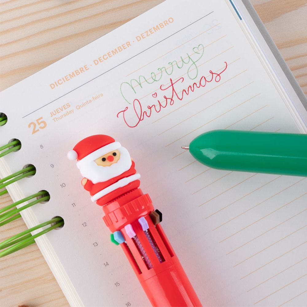 POWIADOM MNIE kiedy będzie dostępnyWprowadź odrobinę świątecznej radości do codziennego pisania! Ten wyjątkowy długopis z 10 kolorami tuszu to idealny sposób, aby dodać kreatywności i koloru do listów, rysunków czy notatek. Świąteczne motywy na obudowie wprowadzają magiczny nastrój, dzięki czemu długopis doskonale sprawdzi się jako drobny prezent do kalendarza adwentowego lub mikołajkowy upominek dla dziecka.
