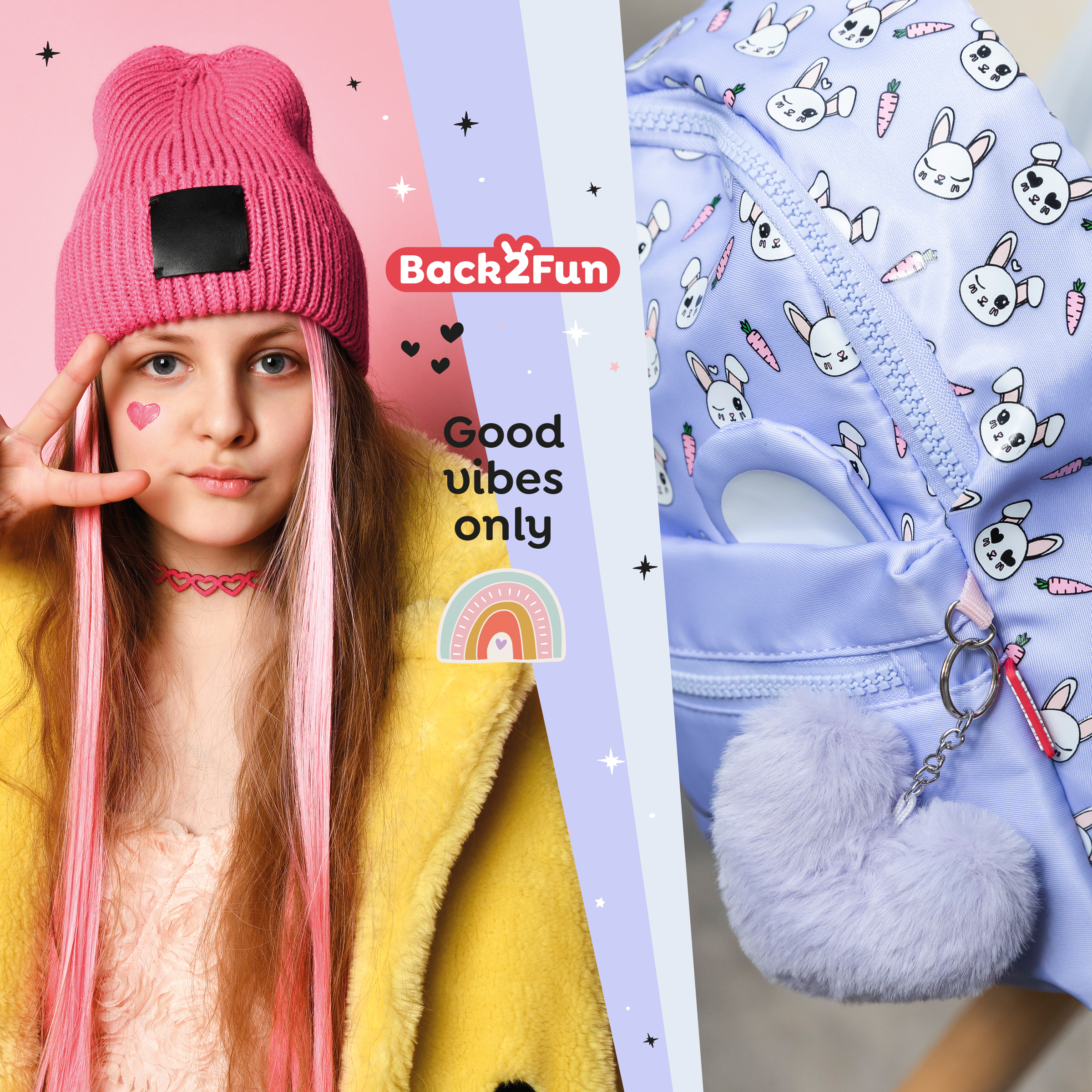 Plecak marki Miquelrius w pięknym fioletowym kolorze z odstającymi, króliczymi uszkami. Jest idealnym wyborem zarówno do przedszkola, jak i na szkolne wycieczki dla starszych dzieci. Plecak posiada jedną główną komorę oraz mniejszą kieszonkę z przodu, obie zamykane na solidny zamek błyskawiczny. Dodatkowo wyposażony jest w dwie boczne kieszonki, które są idealne na bidon czy butelkę z wodą. Uroczy dodatek w postaci przywieszki w kształcie serduszka dodaje mu uroku i sprawia, że każde dziecko będzie chciało go nosić!