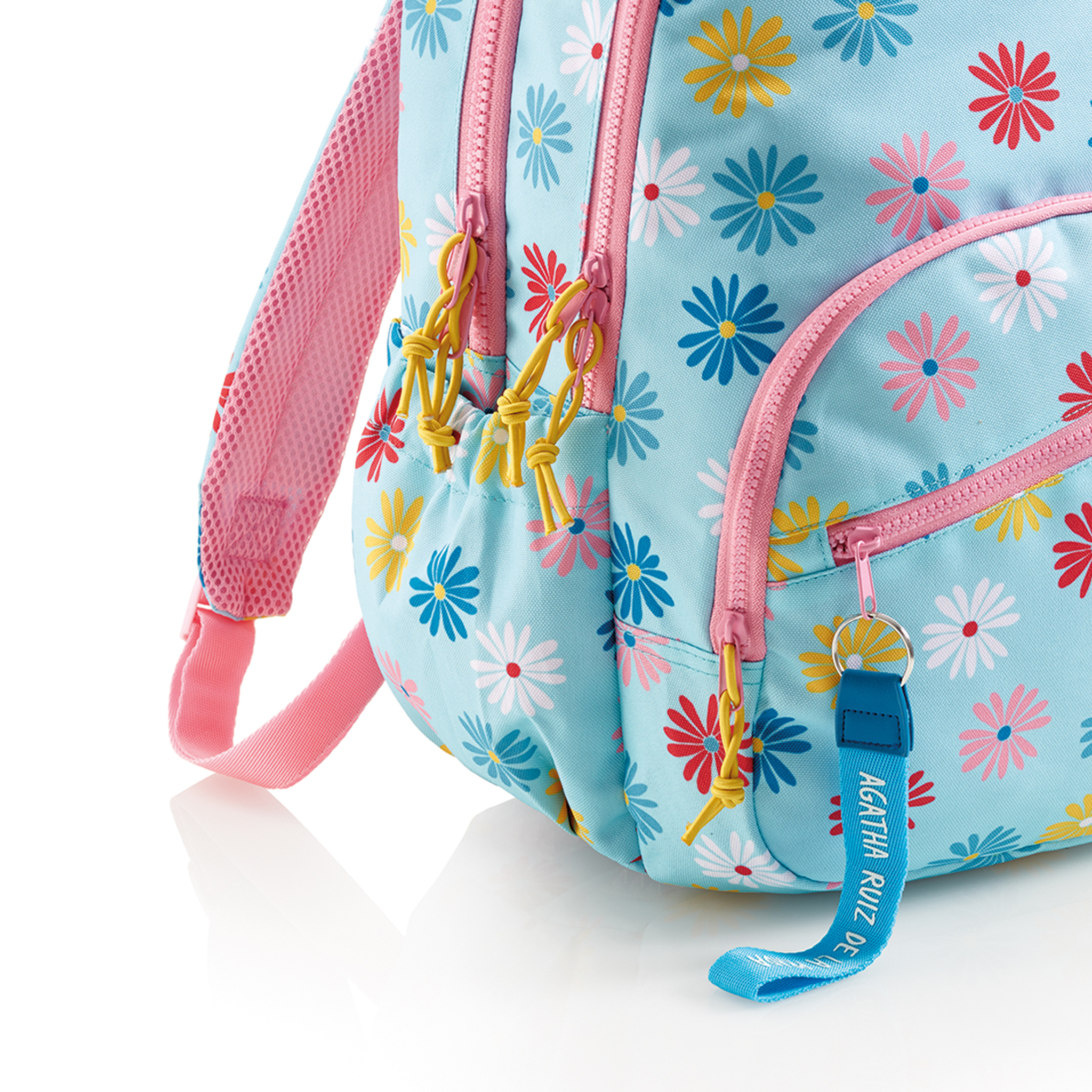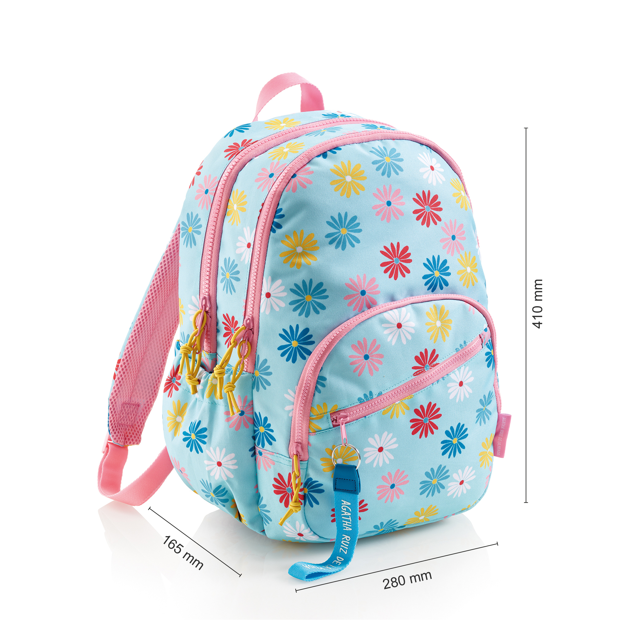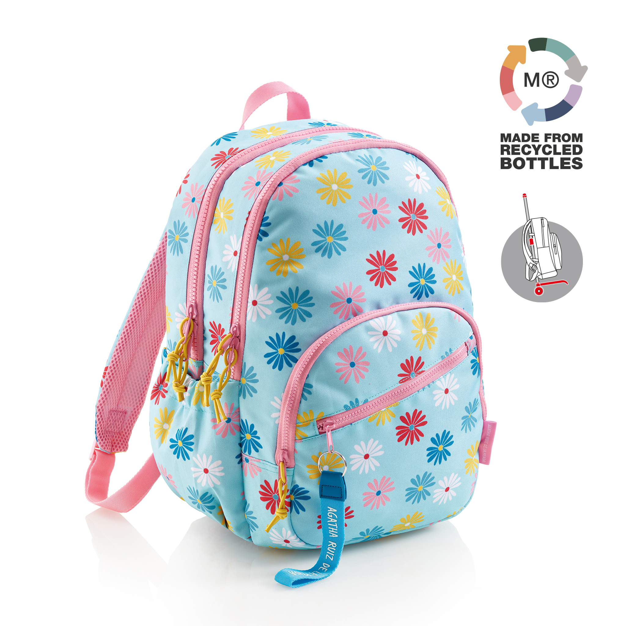 Trzykomorowy plecak szkolny Oslo z kolekcji Daisy marki Miquelrius. Zaprojektowany przez Agathę Ruiz de la Prada - projektantkę mody mocno zaangażowaną w ekologię. Wykonany został z poliestru z recyklingu RPET. Plecak posiada trzy kieszenie zapinane na zamek (dwie górne i jedna przednia). Ma wysokiej jakości wytrzymałe zamki, z metalowymi uchwytami i sznureczkiem ułatwiającym otwieranie. Ergonomiczne i regulowane pasy naramienne, usztywniane plecy zwiększają komfort użytkowania.