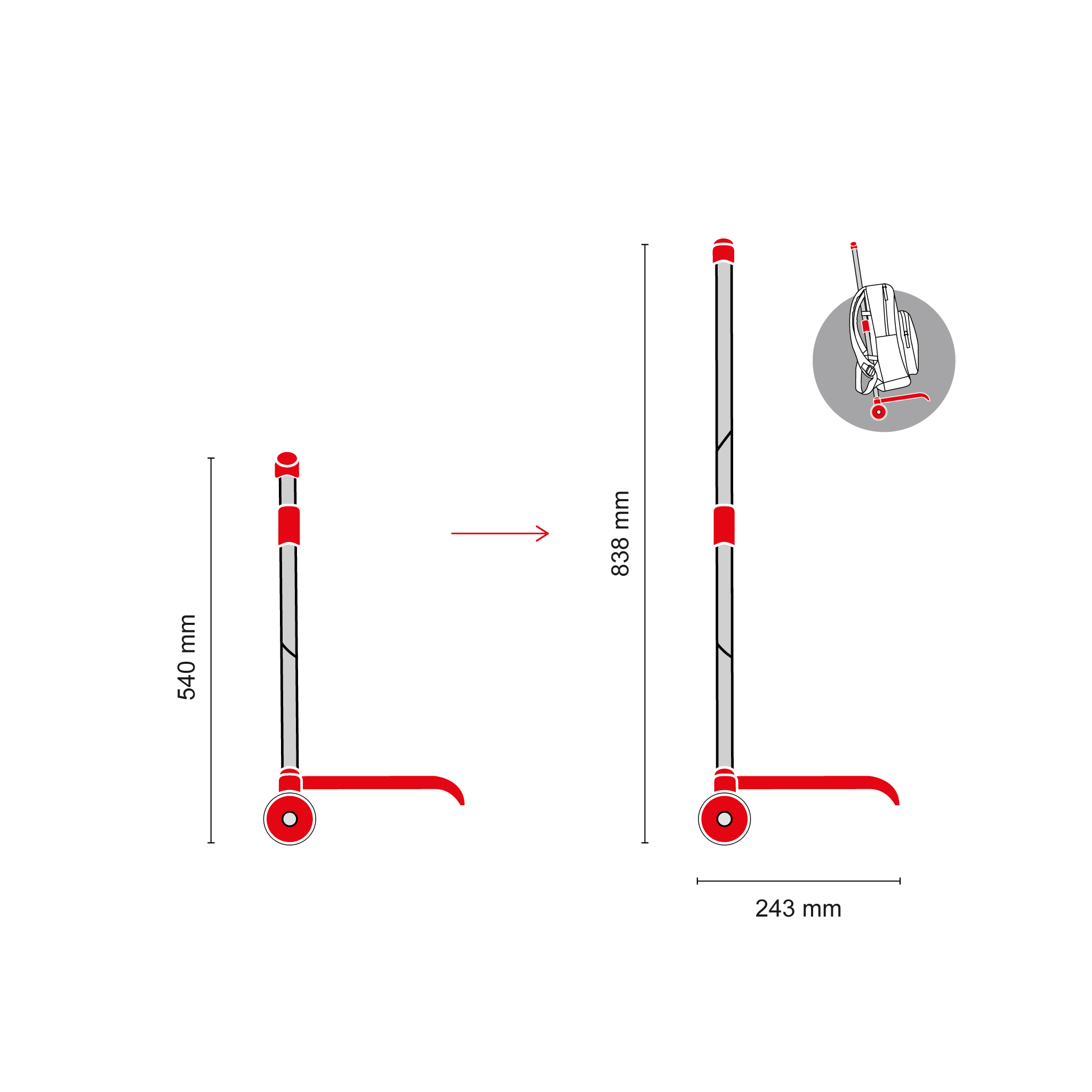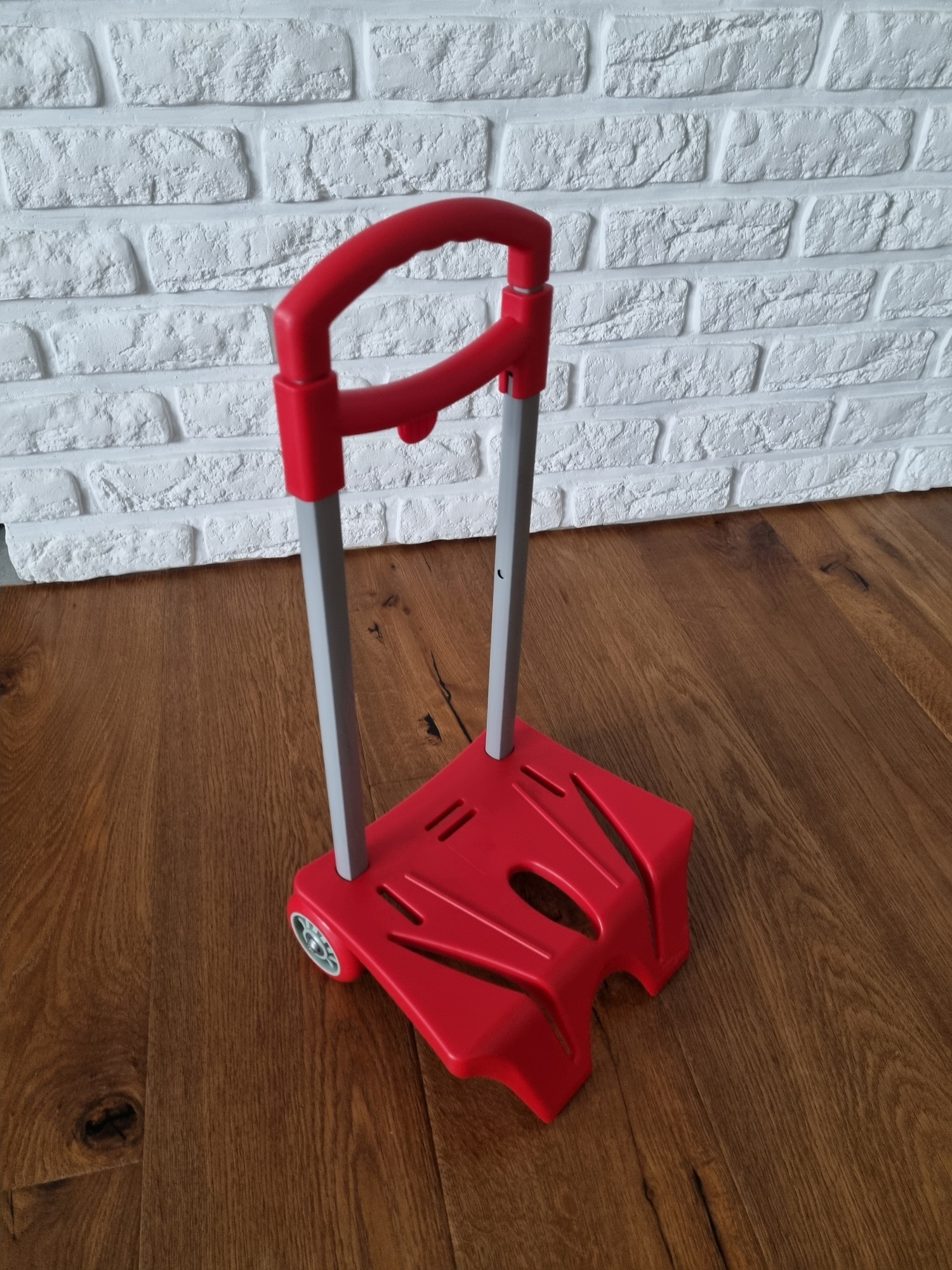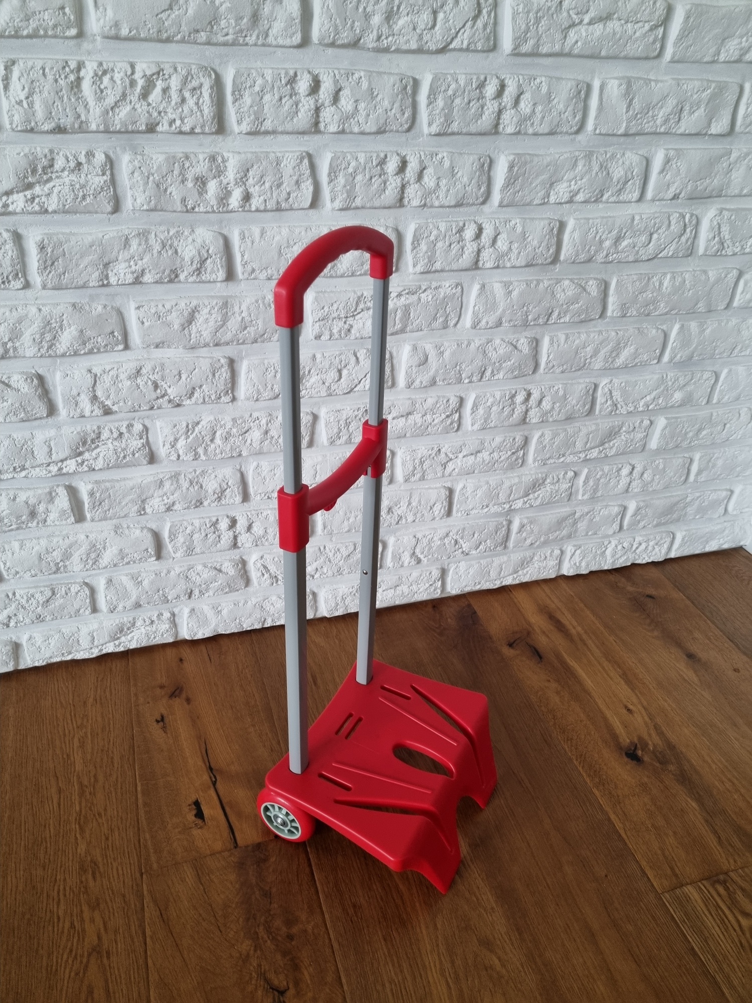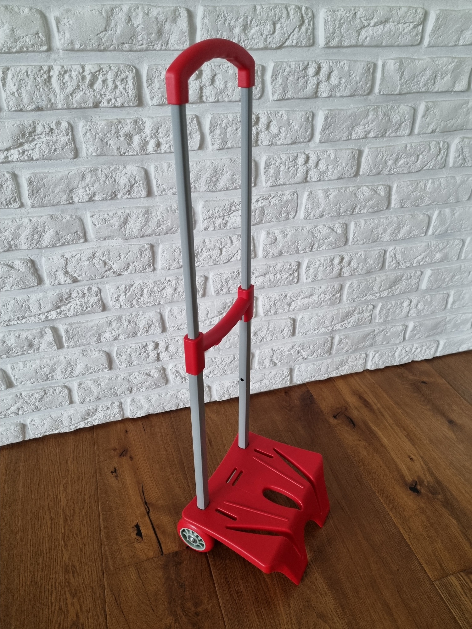 W komplecie z plecakim otrzymujesz stelaż z kółkami, na którym w łatwy sposób możesz zamontować placak tak, aby dziecko nie musiało go nosić na plecach kiedy jest ciężki. Stelaż można łatwo zdemontować gdy nie jest użytkowany.