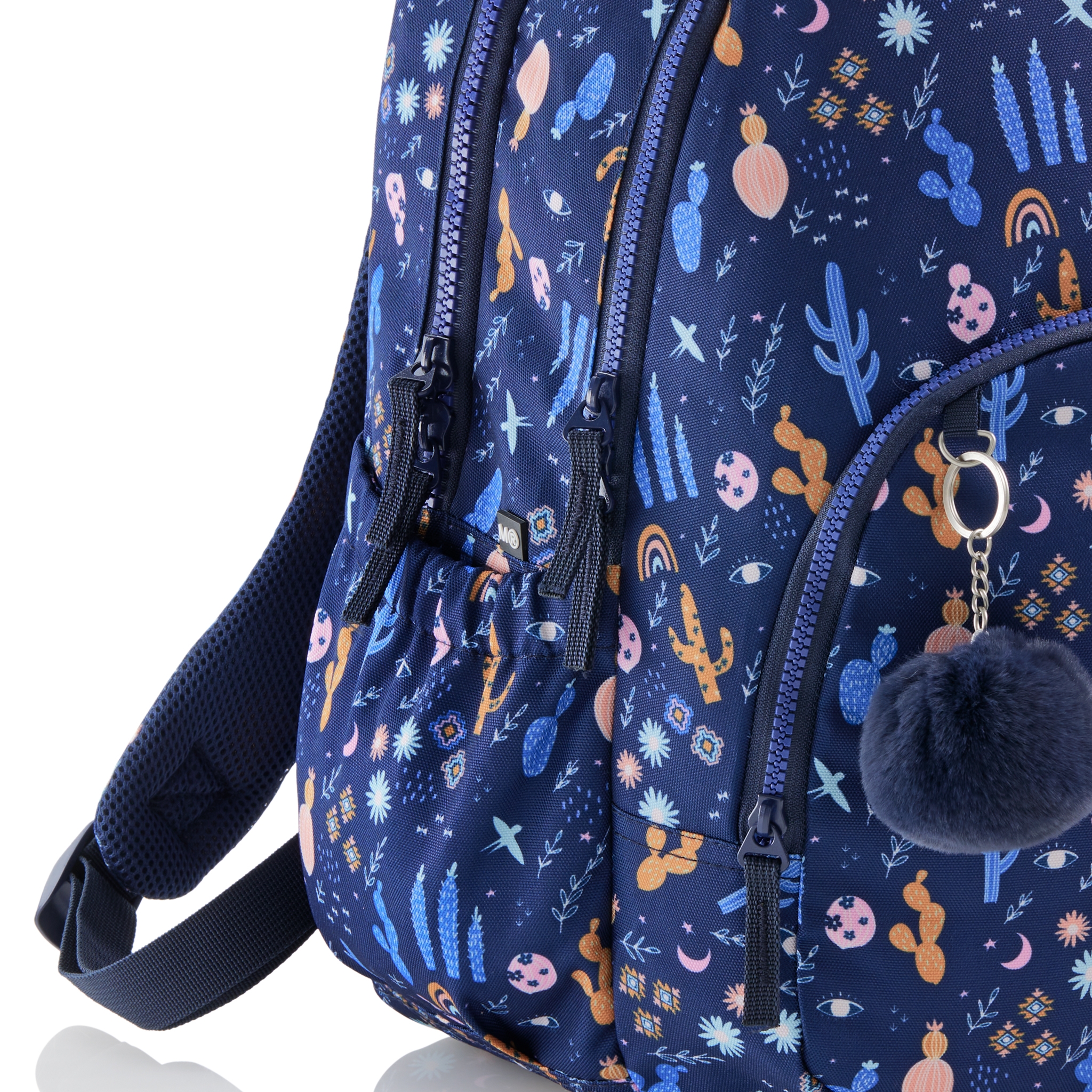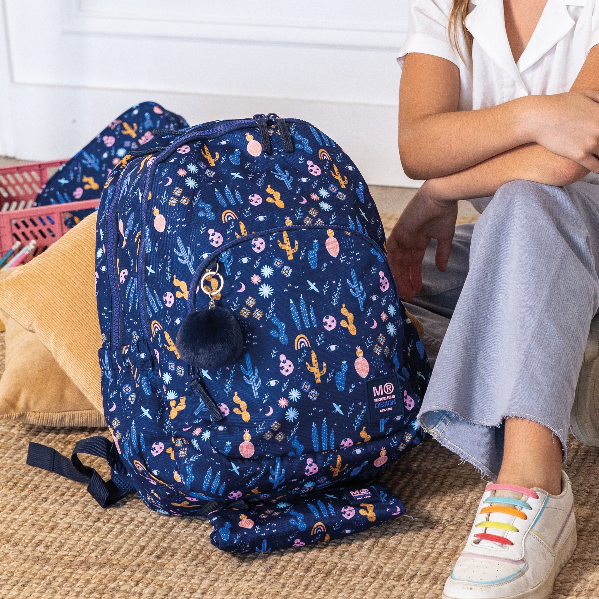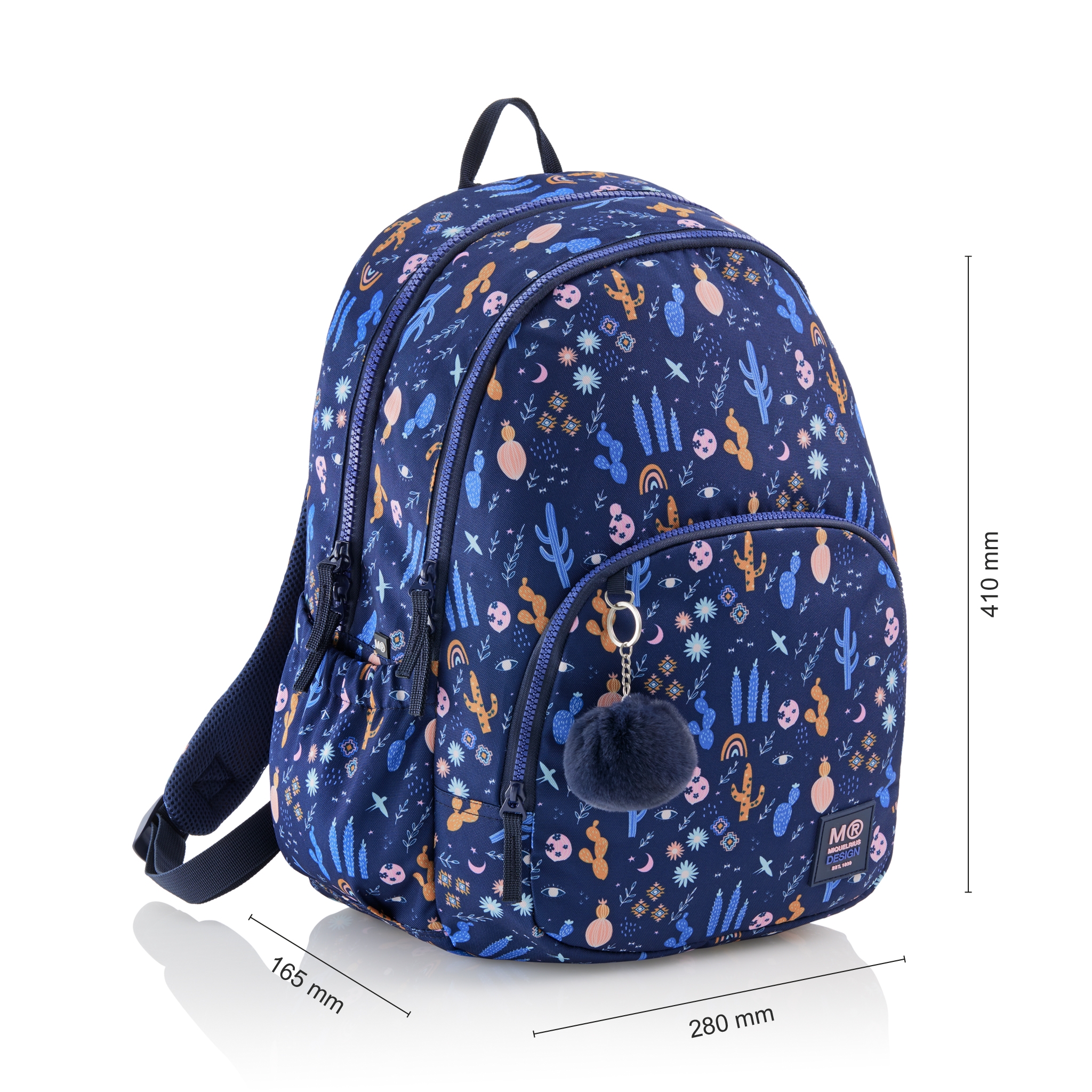 Duży, trzykomorowy plecak marki Miquelrius z pustynną grafiką będzie idealnym wyborem dla dzieci w wieku szkolnym. Trzy komory – dwie przestronne główne i jedna przednia – umożliwiają doskonałą organizację i równomierne rozłożenie ciężaru. Dzięki pojemności 27 litrów, plecak oferuje mnóstwo miejsca na wszystkie szkolne akcesoria.