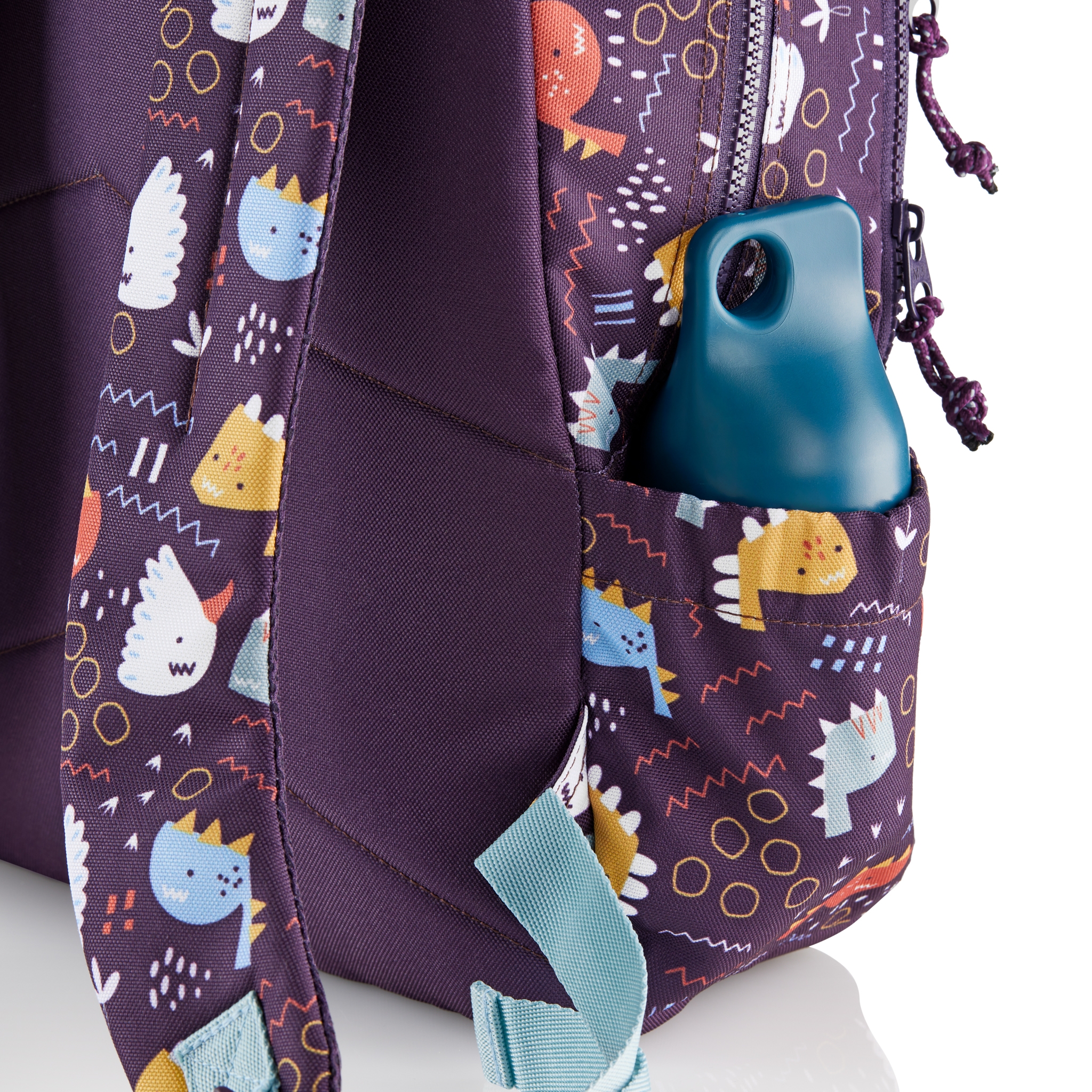 Regulowane paski na ramiona gwarantują komfort noszenia przez cały dzień, a boczne kieszenie z elastyczną gumką doskonale nadają się na bidon z wodą. Wewnątrz znajduję się miejsce na imię dziecka i kontaktowy numer telefonu rodzica, co okazuje się niezwykle pomocne w przypadku zagubienia.