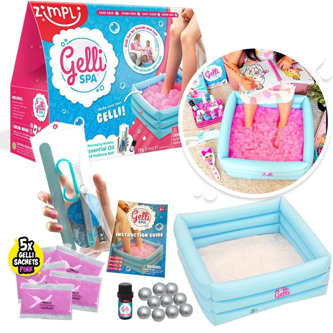POWIADOM MNIE kiedy będzie dostępnyStwórz własne domowe spa dla stóp, który zachwyca swoją oryginalnością. Wystarczy, że wlejesz wodę do nadmuchiwanej miski, wsypiesz zmiękczający proszek Gelli i możesz obserwować, jak zmienia się w różową galaretkę. Teraz dodaj masujące kulki i olejek zapachowy, umieść stopy w misce i ciesz się przyjemnością płynącą z delikatnej, aromatycznej kąpieli.