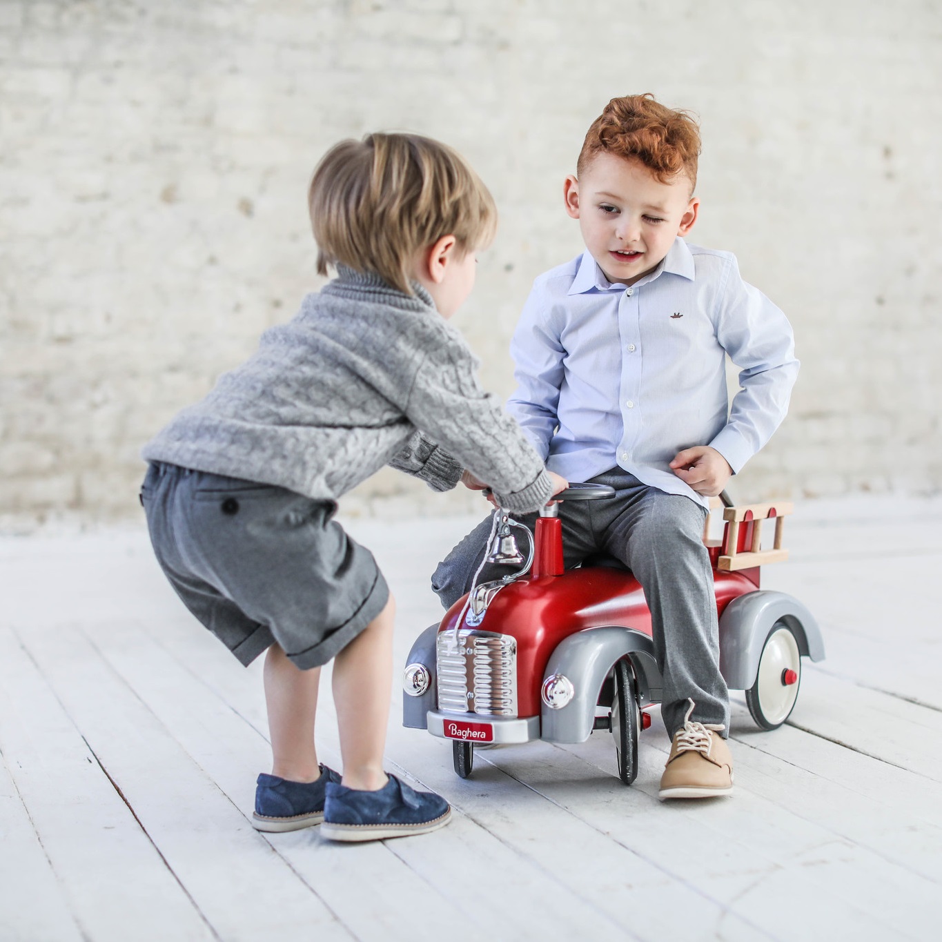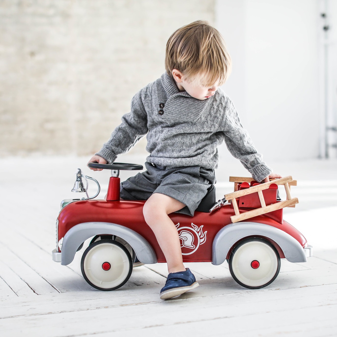 Jeździk Speedster Wóz strażacki od Baghera - uroczy jeździk utrzymany w stylu wozów strażackich z lat 50-tych. Wóz strażacki jest bardzo wytrzymały, by móc uczestniczyć we wszystkich akcjach ratunkowych: zapewnia to metalowa rama i gumowe opony. Błotniki dodają całości nieco retro szyku. Wyposażony jest w drabinę, wąż strażacki oraz dzwonek, który służy jako syrena. Na wyposażeniu tego wozu strażackiego znajdziecie zatem wszystko, co niezbędne do ratowania wszystkich Waszych zabawek z tarapatów.