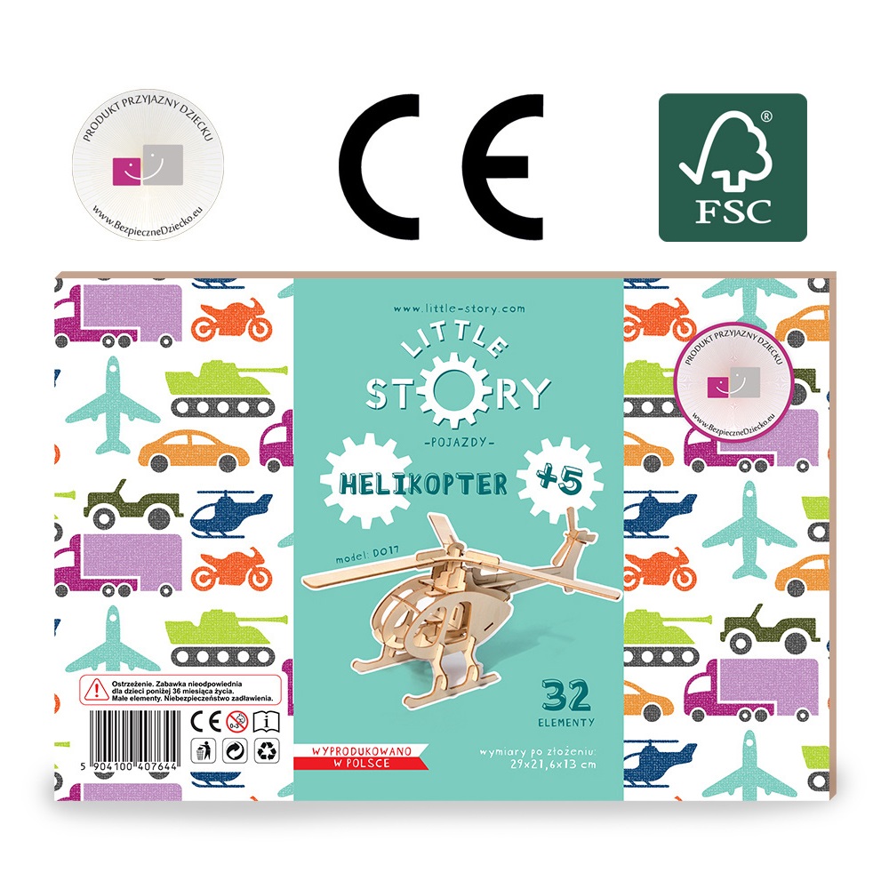 Cechy drewnianych puzzli 3D Little Story Helikopter: