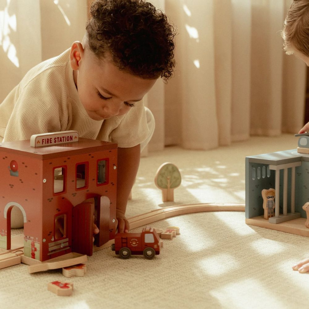Drewniana remiza strażacka Little Dutch to idealna zabawka dla każdego małego bohatera, który marzy o zostaniu strażakiem. Dzięki temu zestawowi dziecko może odgrywać emocjonujące scenariusze – od gaszenia pożaru, przez ratowanie zwierząt, aż po codzienne życie w strażnicy. Zestaw rozwija kreatywność, zdolności manualne oraz uczy współpracy i pomagania innym. Wykonany z wysokiej jakości drewna z certyfikatem FSC, pomalowany bezpiecznymi farbami na bazie wody, jest nie tylko piękny, ale i bezpieczny dla najmłodszych.