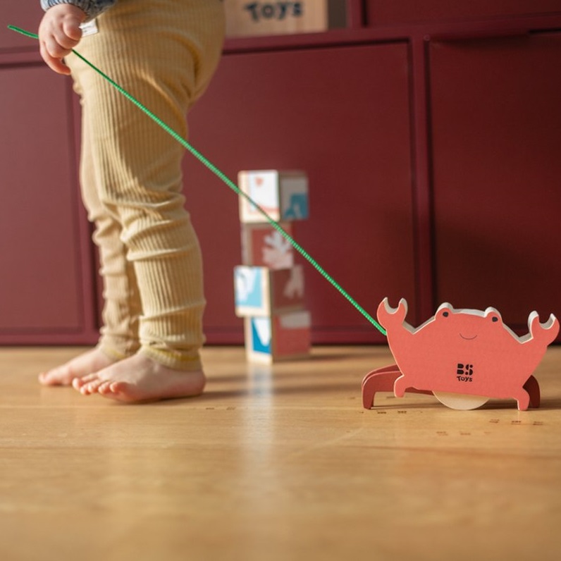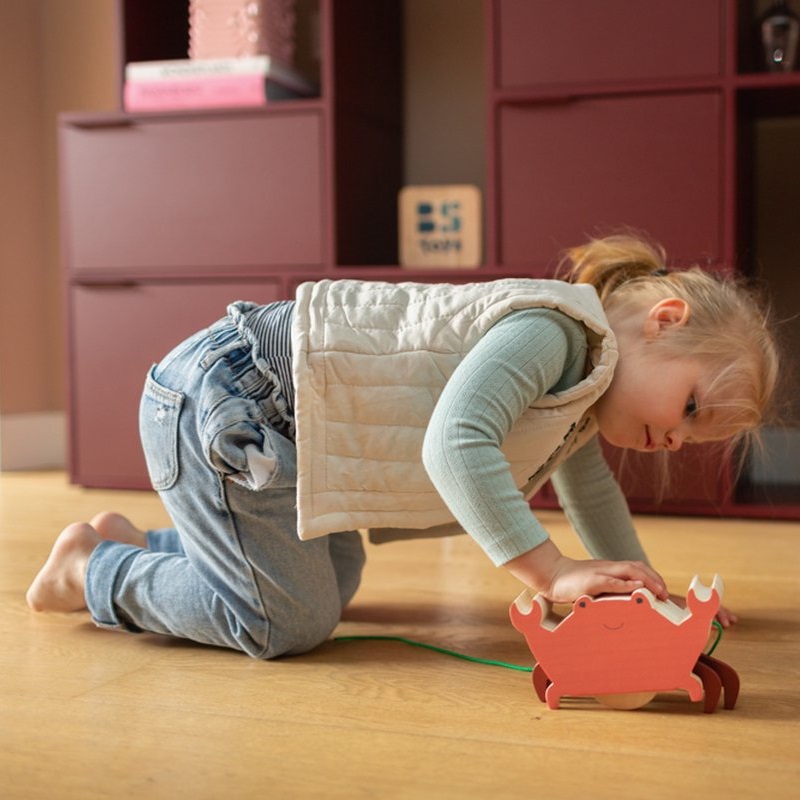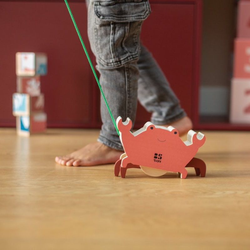 Poznaj drewnianego kraba do ciągnięcia – uroczego kompana, który sprawi, że każdy krok najmłodszych odkrywców stanie się wspaniałą przygodą. Dzięki starannie zaprojektowanym kółkom krab porusza się płynnie, nie pozostawiając śladów na podłodze, co czyni go idealnym towarzyszem zabaw w domu. Wykonany z naturalnego drewna, łączy trwałość z estetyką, przyciągając uwagę pięknym, przyjaznym designem.