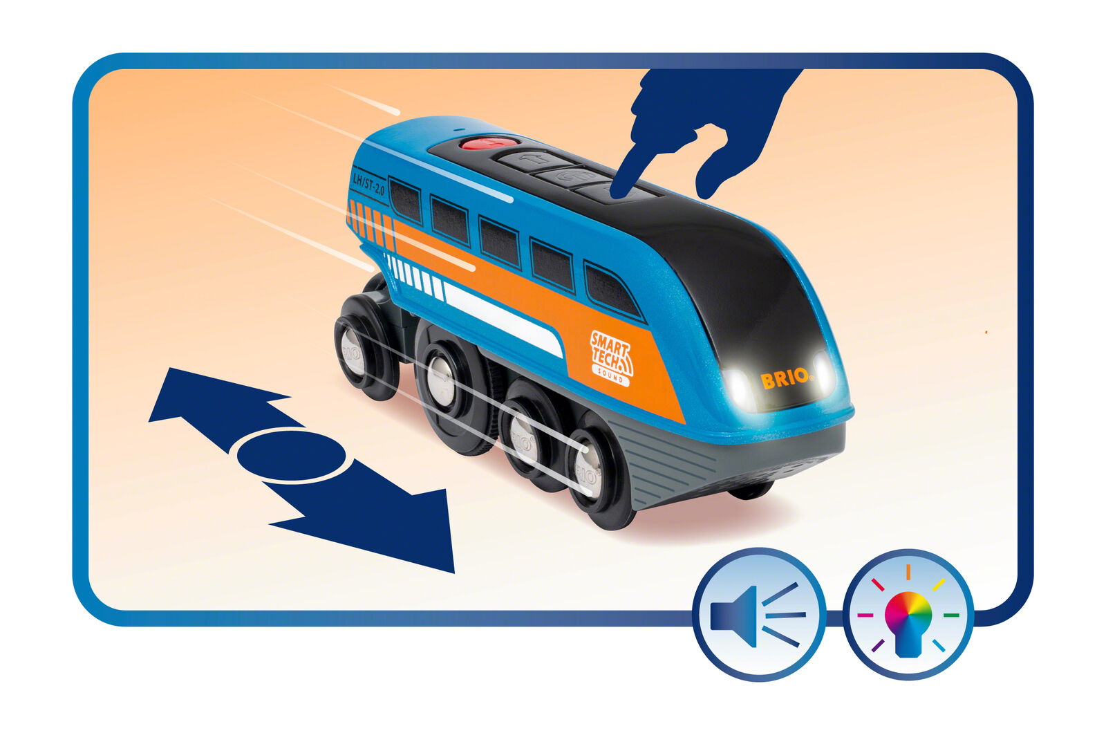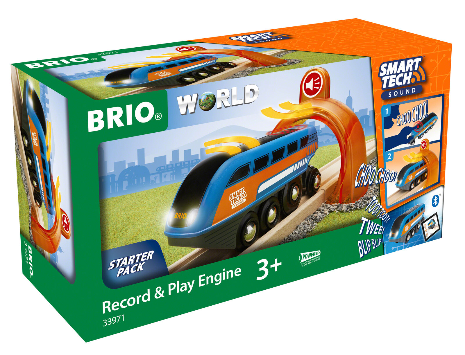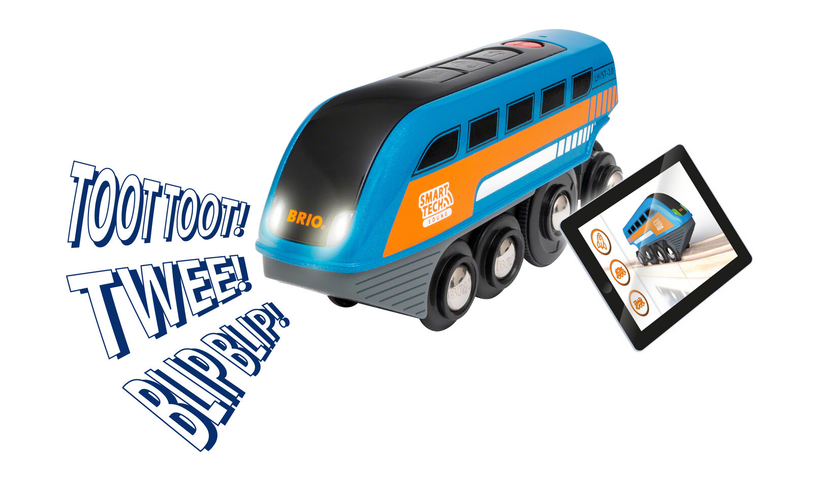 Lokomotywa z serii BRIO World zasilana bateriami, skonstruowana przy użyciu zawansowanej technologii Smart Tech, jest w stanie poradzić sobie nawet z dużymi ładunkami. A to jeszcze nie wszystko! Pociąg wyposażony jest w nagrywarkę. Naciśnięcie czerwonego przycisku znajdującego się na dachu lokomotywy pozwala nagrać własne dźwięki, a następnie usłyszeć je, gdy pociąg przejeżdża przez dołączony do zestawu tunel. Technologia Smart Tech umożliwia komunikację z otoczeniem poprzez automatyczne wymuszanie różnych zachowań pociągu – wprawianie w ruch, włączanie wielokolorowych świateł, aktywację dźwięku. Wszystko to doskonale pobudza dziecięcą wyobraźnię.