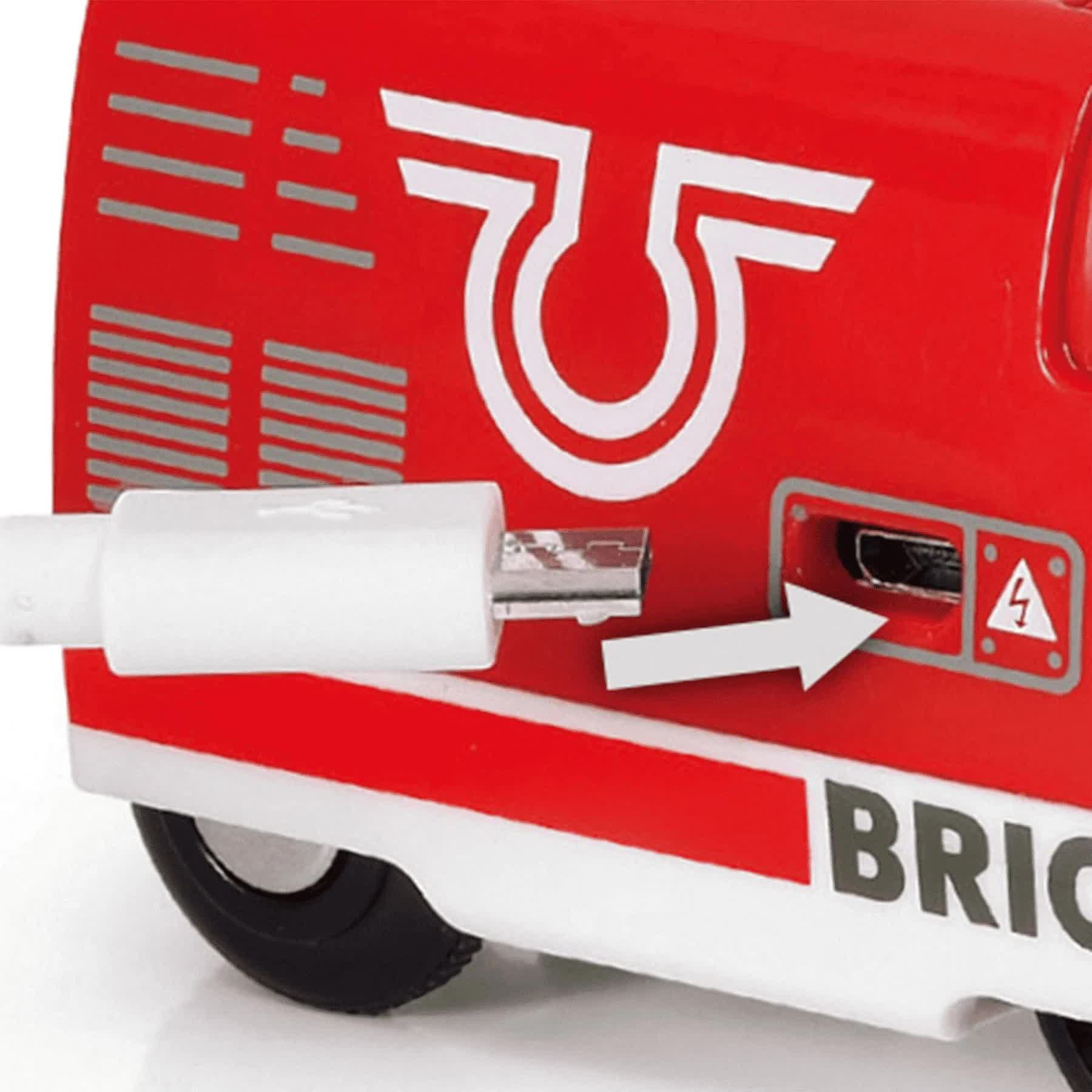 Zabawa pociągiem elektrycznym BRIO nie ma końca! Nowoczesny pociąg podróżny ładowany za pomocą kabla z wejściem mini-USB jest przystosowany do wielu godzin cudownej zabawy! Oczywiście konduktor dba o punktualne przybycie i odjazd pociągu.