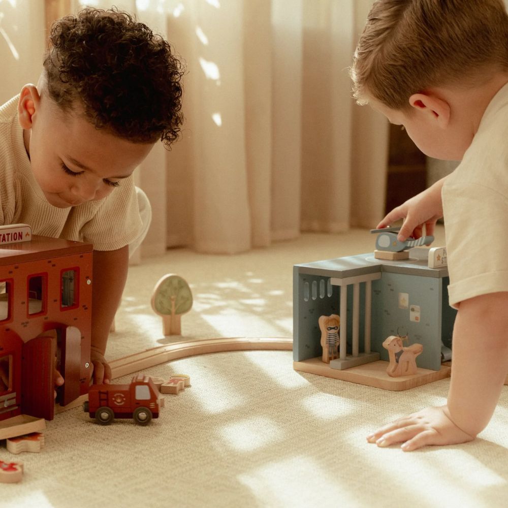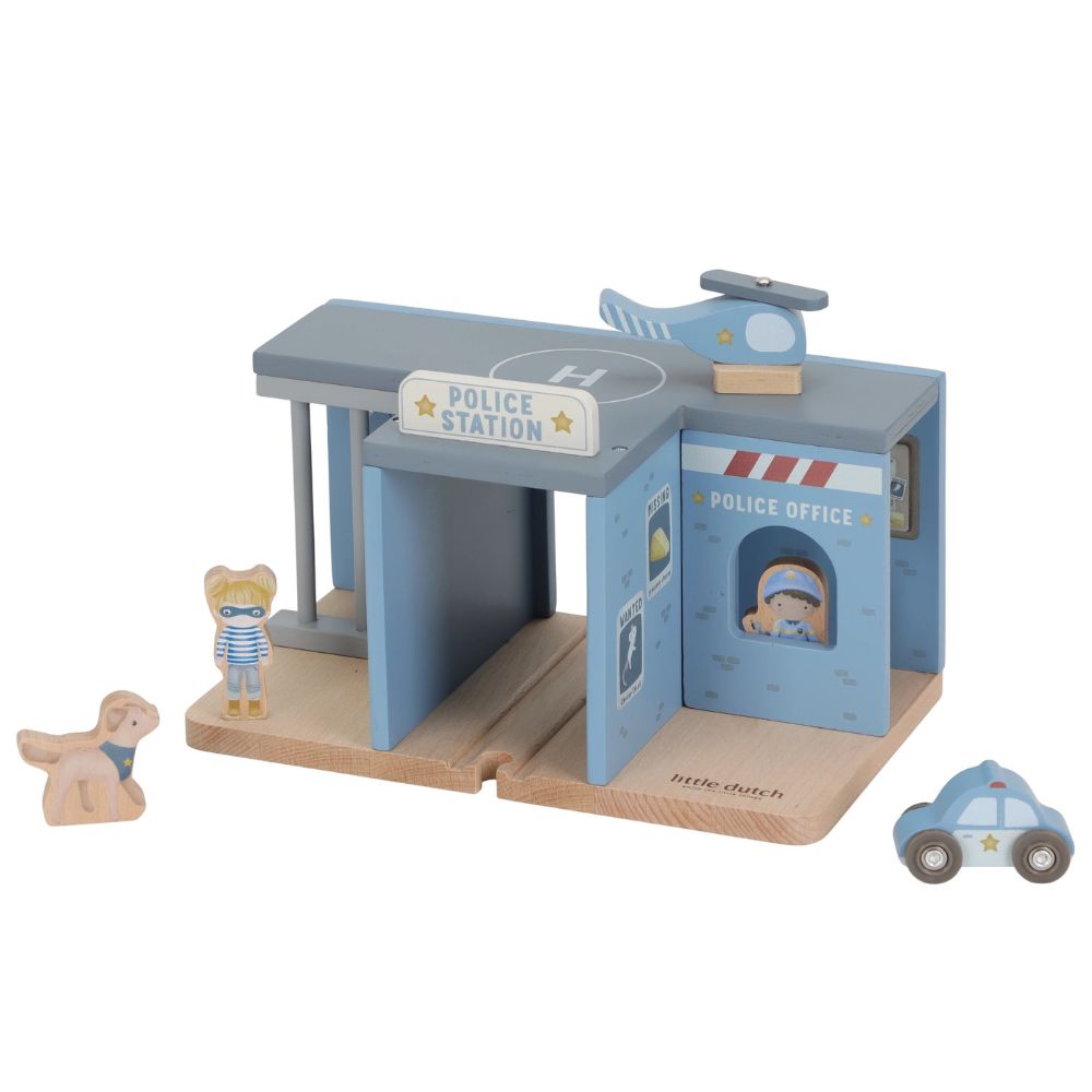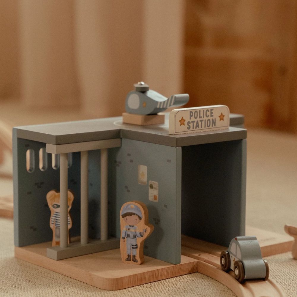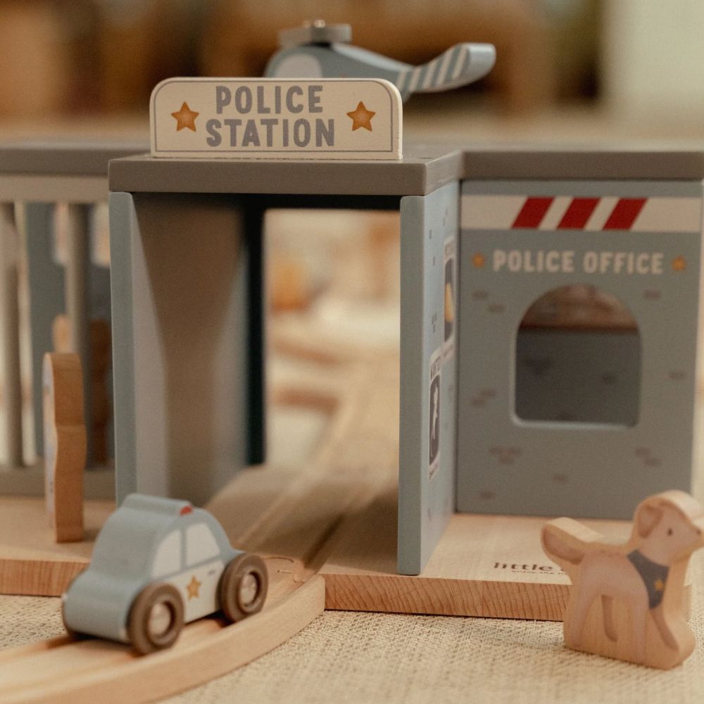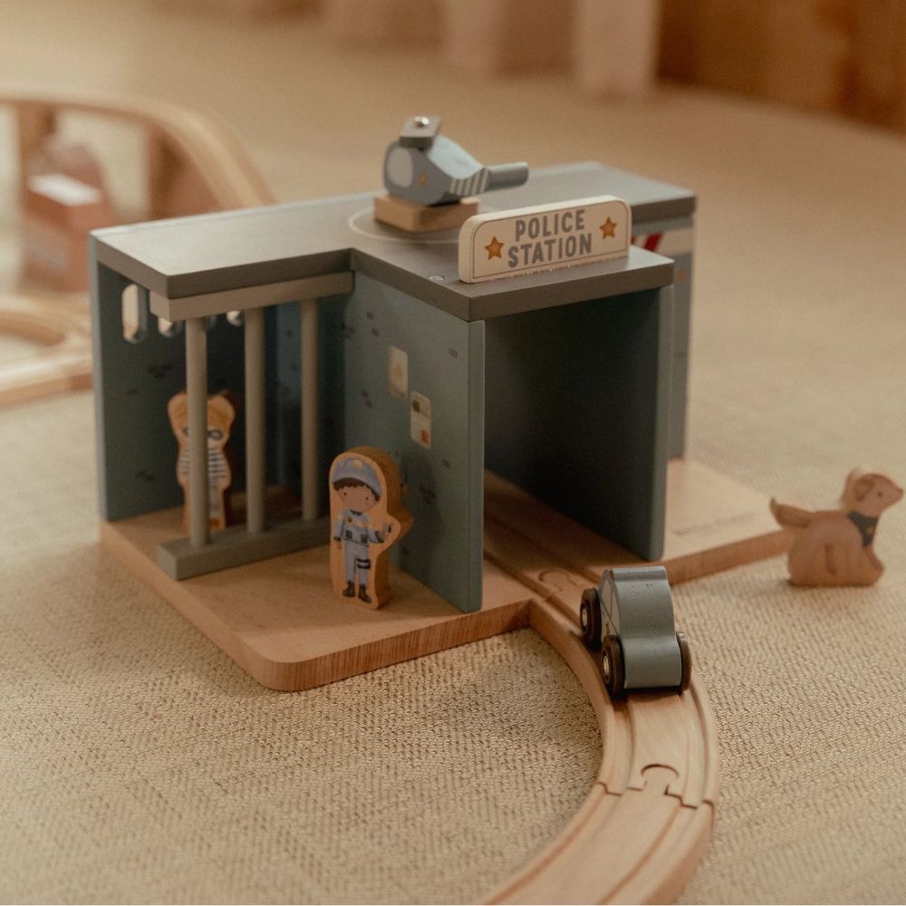 To doskonały pomysł na prezent dla 3-latka – zabawka wspiera rozwój manualny, uczy logicznego myślenia i zachęca do odgrywania ról. Co więcej, posterunek można połączyć z dużą drewnianą kolejką Little Dutch XXL (100 elementów), co otwiera jeszcze więcej możliwości zabawy.
