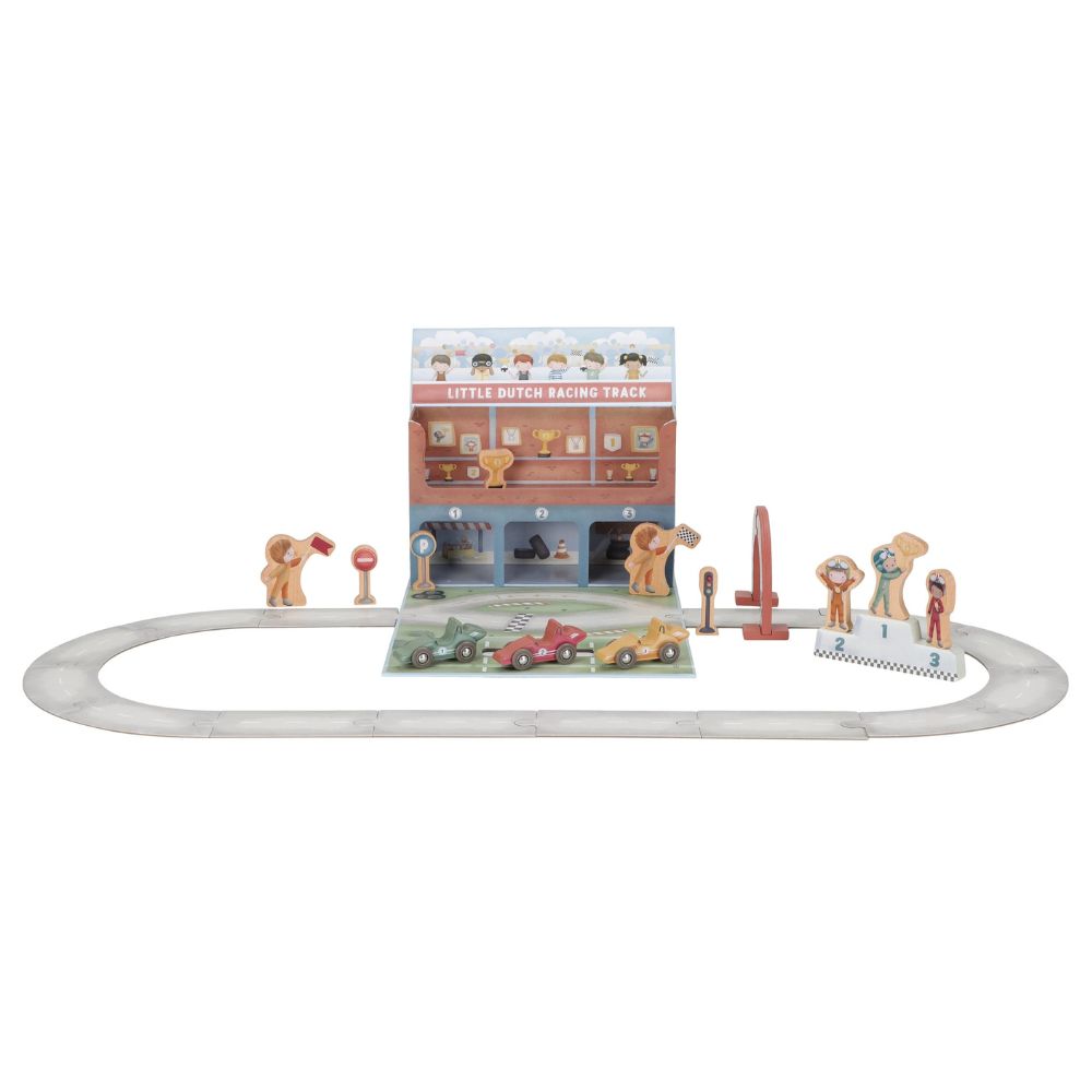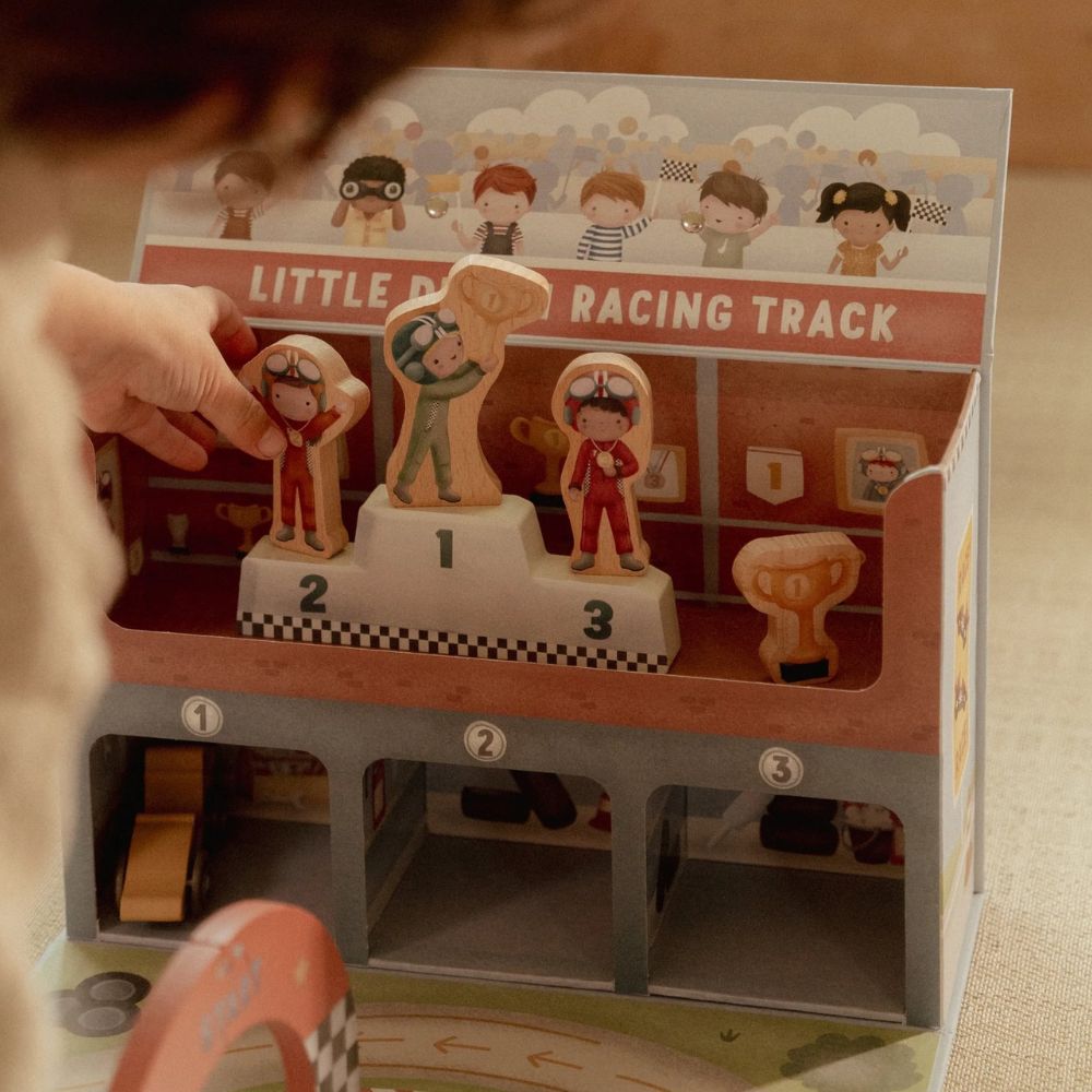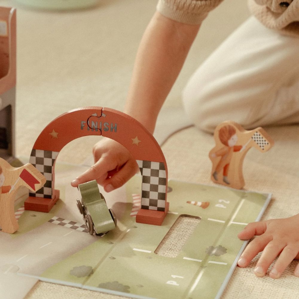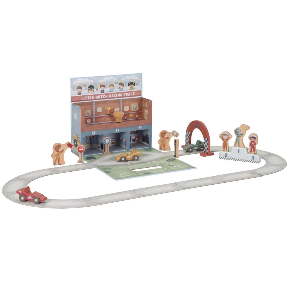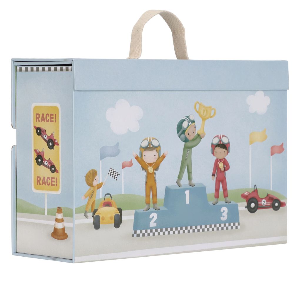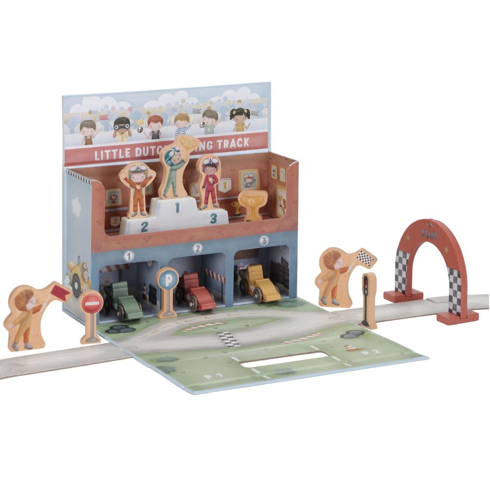 Gotowi na wielki wyścig? Ten wyjątkowy tor wyścigowy od Little Dutch to świetna propozycja dla małych fanów motoryzacji. Zestaw zapakowany jest w praktyczną walizeczkę, dzięki czemu możesz go z łatwością zabrać do przedszkola, na wakacje czy w odwiedziny do znajomych. Po rozłożeniu maluch odkryje tor z grubego kartonu, kolorowe autka oraz drewniane akcesoria, które sprawią, że zabawa stanie się jeszcze bardziej realistyczna. Po skończonym wyścigu wszystkie elementy bez problemu zmieszczą się z powrotem do walizeczki – porządek gwarantowany!