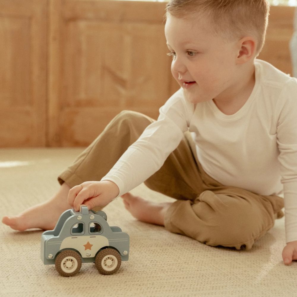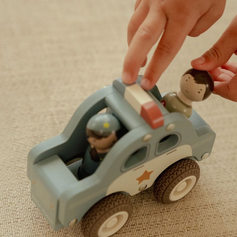 Każdy mały fan służb mundurowych pokocha ten uroczy, drewniany wóz policyjny z wyjmowanym ludzikiem. To idealna zabawka, która rozwija wyobraźnię, zachęca do odgrywania ról i uczy zasad bezpieczeństwa. Dzięki poręcznemu kształtowi autko świetnie dopasowuje się do małych rączek, a bezpieczne farby na bazie wody gwarantują pełną ochronę podczas zabawy. To doskonały pomysł na prezent dla malucha, który uwielbia dynamiczną i kreatywną zabawę!