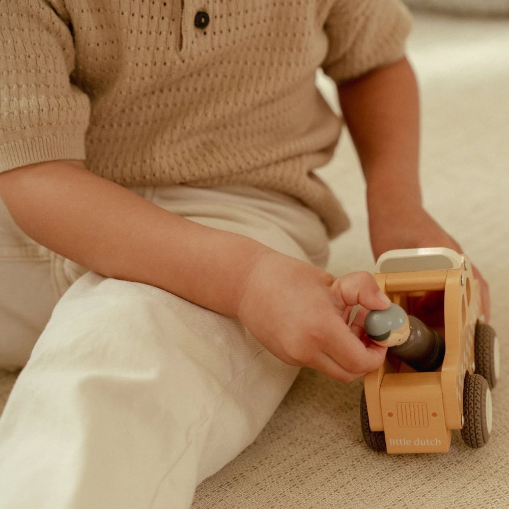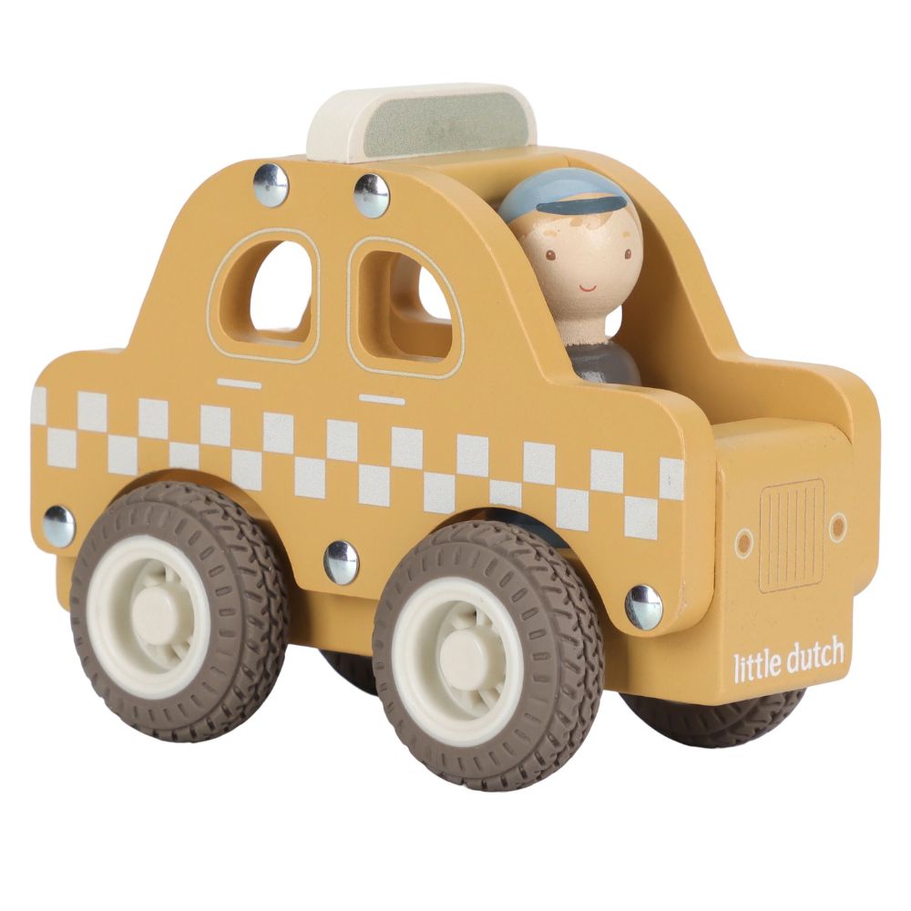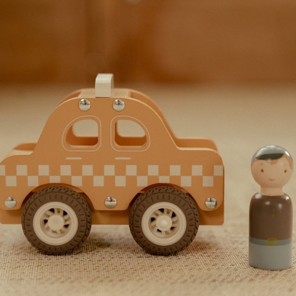 Wsiądź do drewnianej taksówki i ruszaj w drogę! Ta klasyczna zabawka zachęca do kreatywnej zabawy w odgrywanie ról – maluch może przewozić pasażerów po zatłoczonym mieście, odwiedzać stacje i bezpiecznie odwozić wszystkich do domu. Gumowe koła zapewniają płynną i cichą jazdę, a poręczny kształt sprawia, że taksówkę łatwo chwycić małymi rączkami. To ponadczasowa propozycja, która rozwija wyobraźnię, zdolności manualne oraz motorykę dziecka. Drewniana taksówka to idealny pomysł na prezent, który sprawi radość na długo.