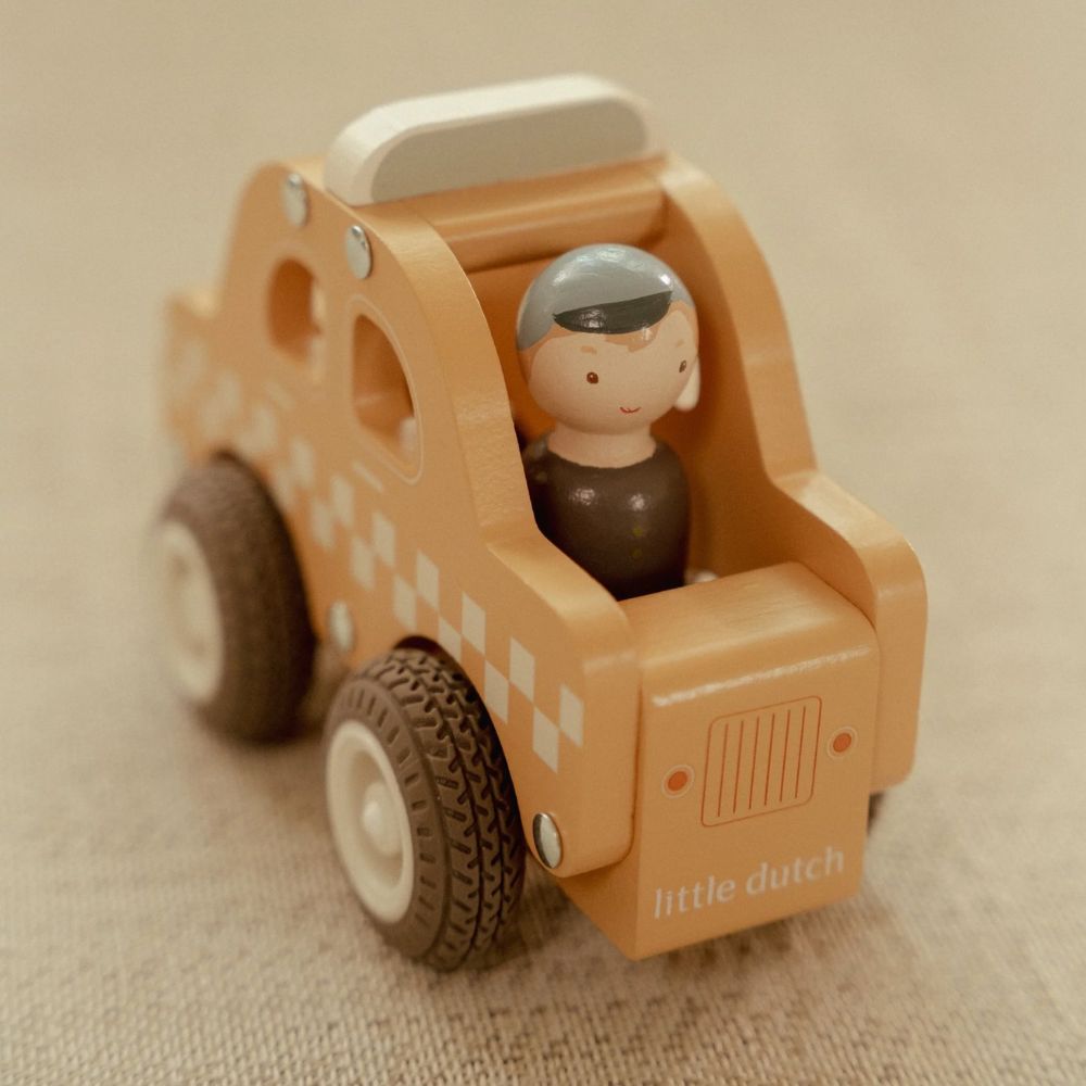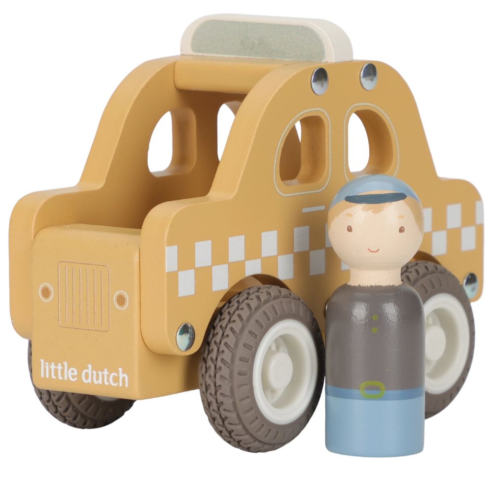 W zestawie: drewniana taksówka z kierowcą