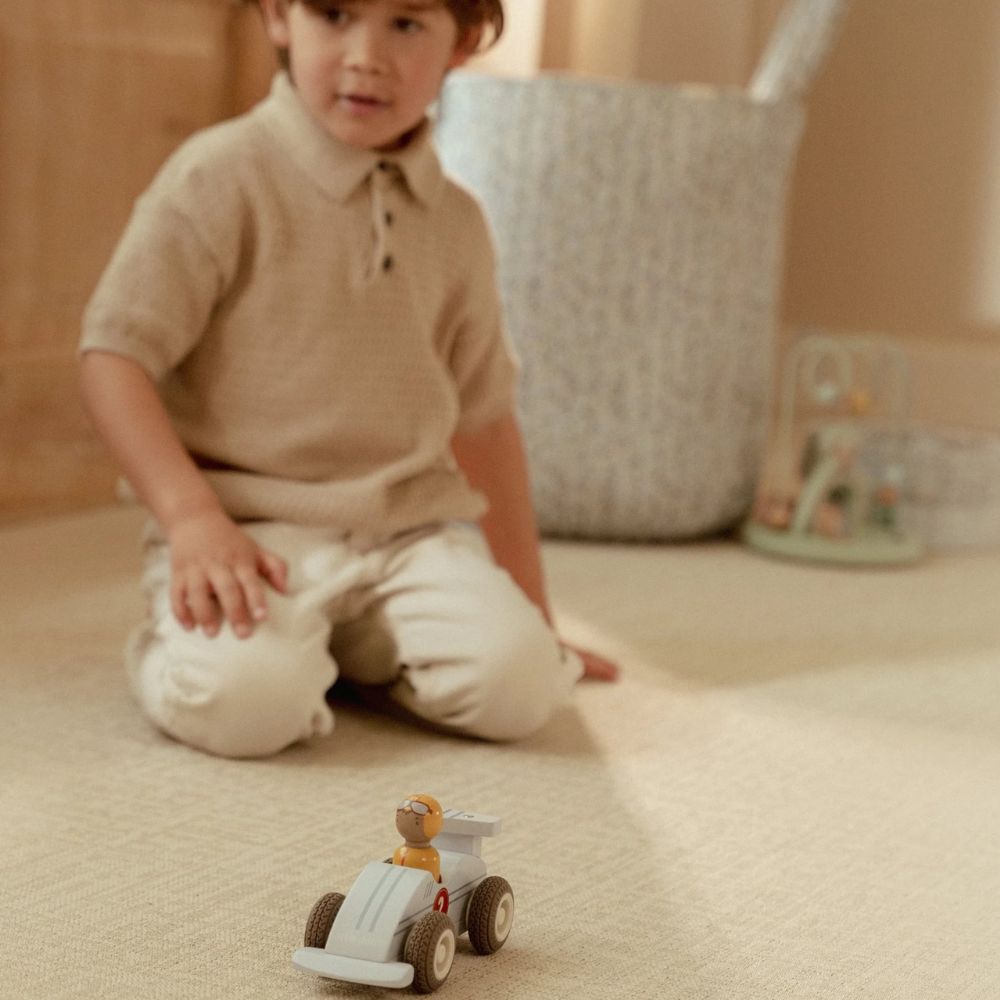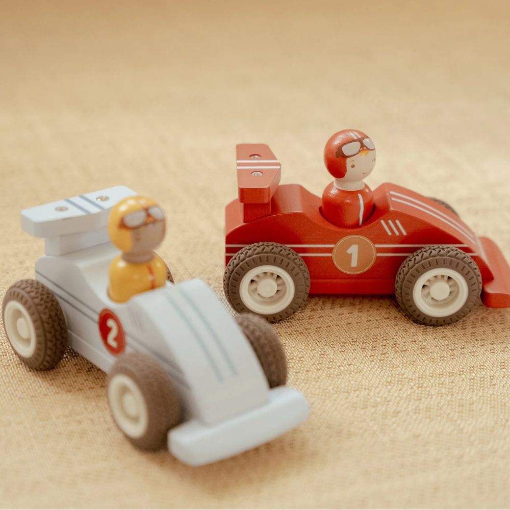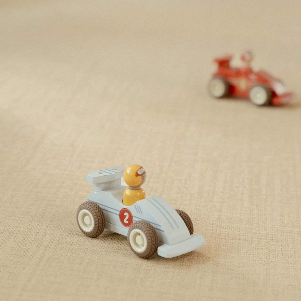 Samochodziki wykonane są z trwałego drewna i posiadają gumowe koła, dzięki czemu płynnie poruszają się po podłodze, a przy tym są bezpieczne i odporne na intensywną zabawę. To doskonały prezent dla małych miłośników szybkości i motoryzacyjnych przygód. Na metę!