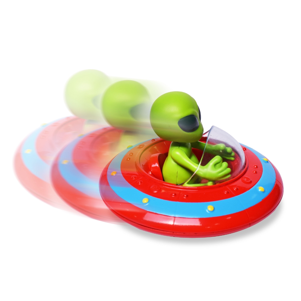 Ten kolorowy statek kosmiczny z uroczym ufoludkiem na pokładzie to idealny prezent dla 3-latka, który uwielbia fantastyczne opowieści i kosmiczne zabawy. Figurka obcego mierzy 7,5 cm i można ją posadzić za kierownicą pojazdu, dzięki czemu maluch może odgrywać własne historie o kosmicznych podróżach, spotkaniach z innymi planetami i odwiedzaniu nieznanych galaktyk.