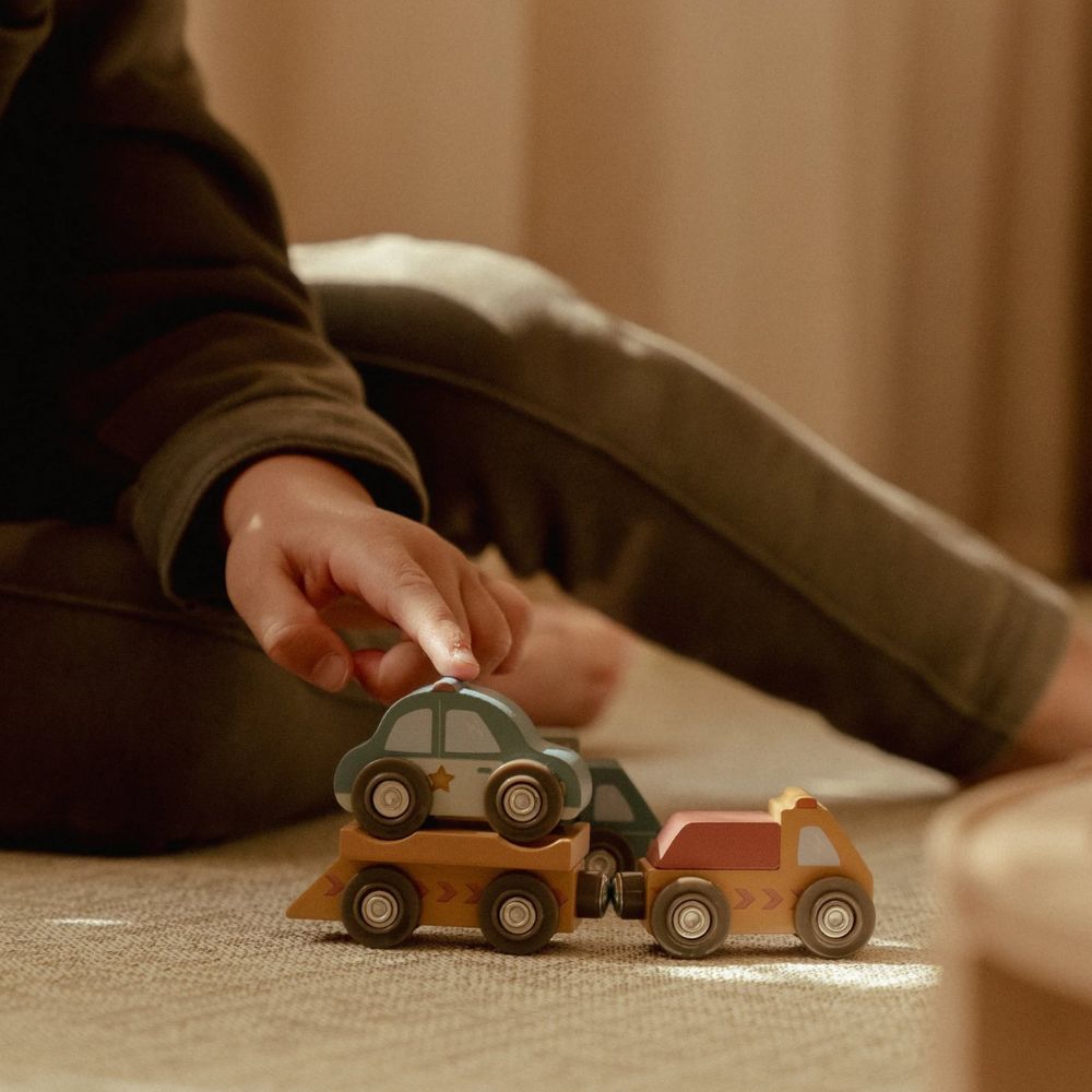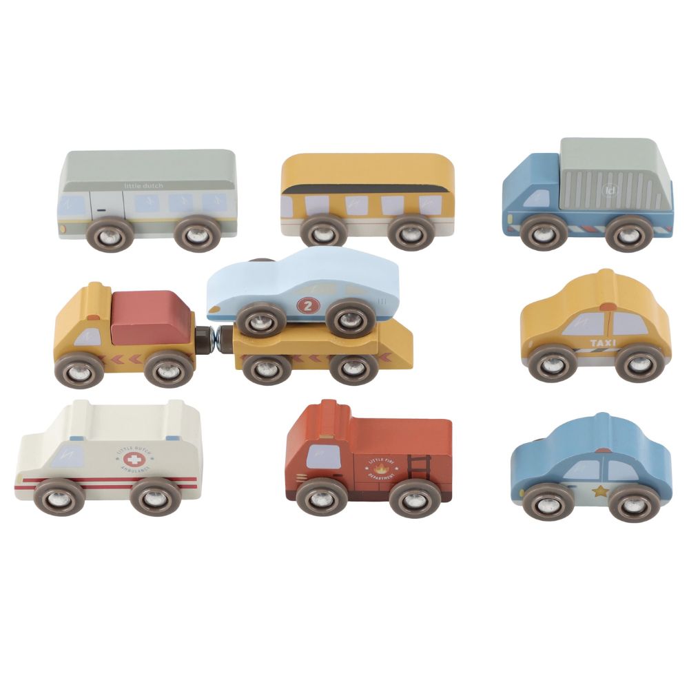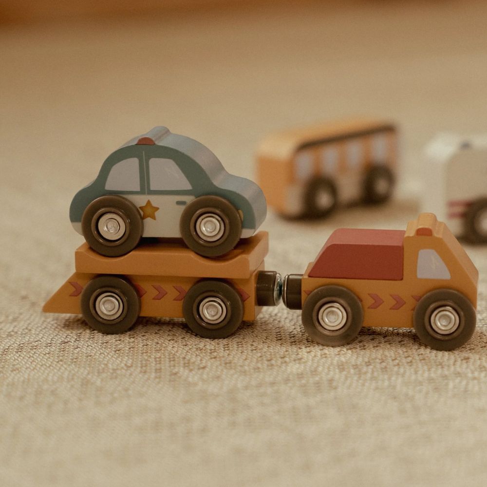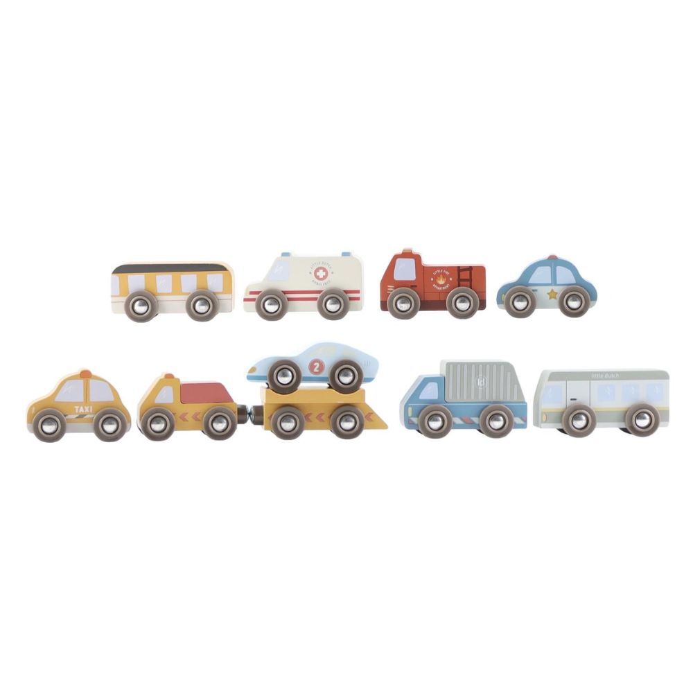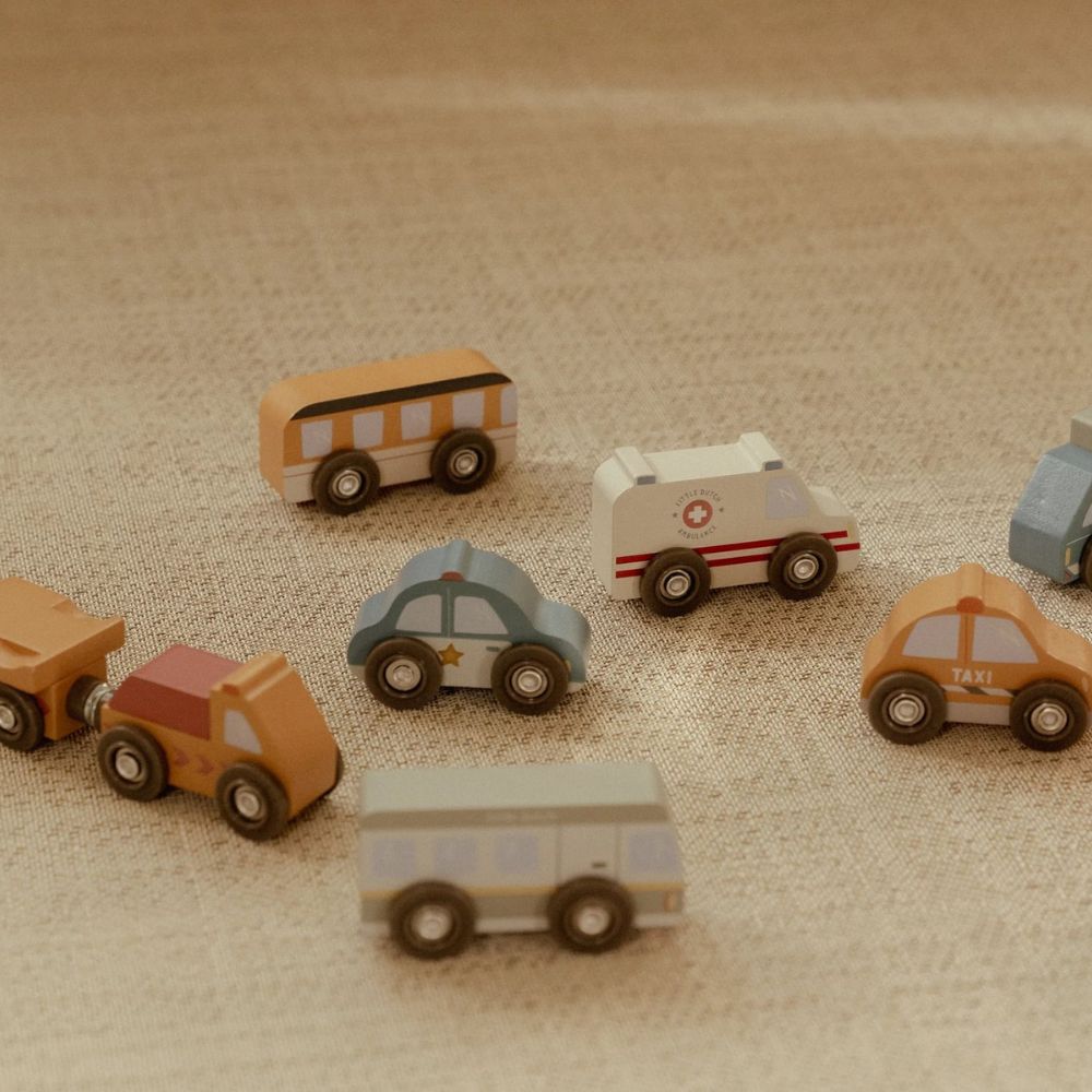 Miasto nigdy nie śpi – a dzięki tym wyjątkowym drewnianym pojazdom dzieci mogą odgrywać pełne akcji scenariusze. Straż pożarna wyrusza, by ugasić pożar, policja patroluje ulice, a ciężarówka dostarcza towar w odpowiednie miejsce. Każdy pojazd został wykonany z drewna i pomalowany bezpiecznymi farbami na bazie wody, dzięki czemu są one w 100% bezpieczne dla najmłodszych. To idealne uzupełnienie kolekcji torów Little Dutch Train Track XL i wszystkich zestawów dodatkowych – wystarczy połączyć je i stworzyć własne, pełne przygód miasto.