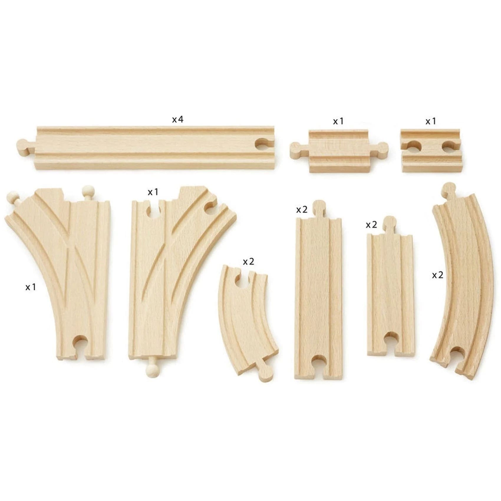Wyjątkowy zestaw do rozbudowy kolejki drewnianej wyróżnia się wysoką jakością wykonania. Drewno użyte do produkcji torów posiada certyfikat FSC. Odpowiednio wyprofilowane tory sprawiają, że zabawa kolejką jest przyjemna, a lokomotywa nie będzie z nich wypadać, nawet podczas trudnych odcinków takich jak zakręty oraz skrzyżowania. Zabawa podczas której dziecko samodzielnie konstruuje trasy przejazdu kolejki rozwija umiejętności logicznego myślenia.