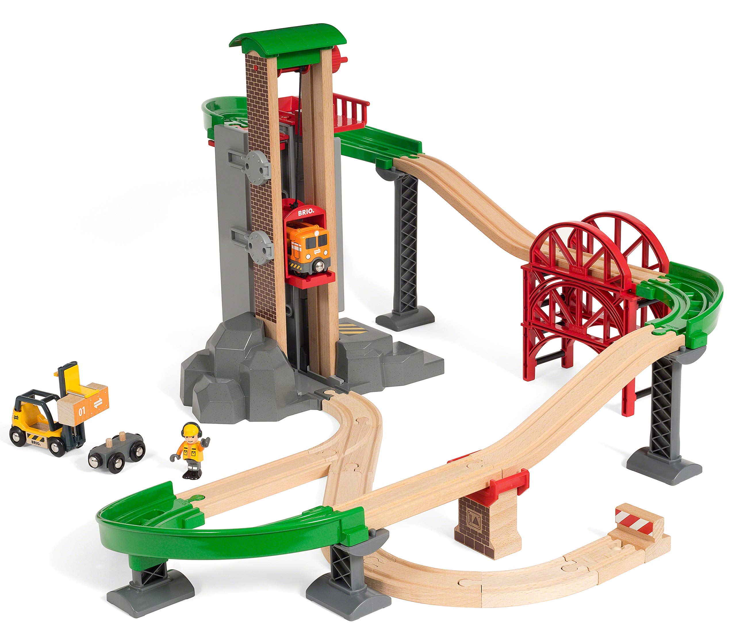 Uzupelnij swoją kolekcję zabawek Brio tym niezwykłym zestawem, wznoszenie pionowych konstrukcji jest zawsze niezwykle emocjonujące. Zestaw Magazynowy z windą umożliwia budowanie aż do samej góry… Można budować mosty, zakręty i pochyłe tory, a potem układać je w stosy, aż do górnej części magazynu. Winda podnosi wagon, trzeba go rozładować, a potem można obserwować jak zjeżdża w dół. Zestaw pozwala na tworzenie różnorodnych wariantów aranżacyjnych. Wszystko zależy od kreatywności!