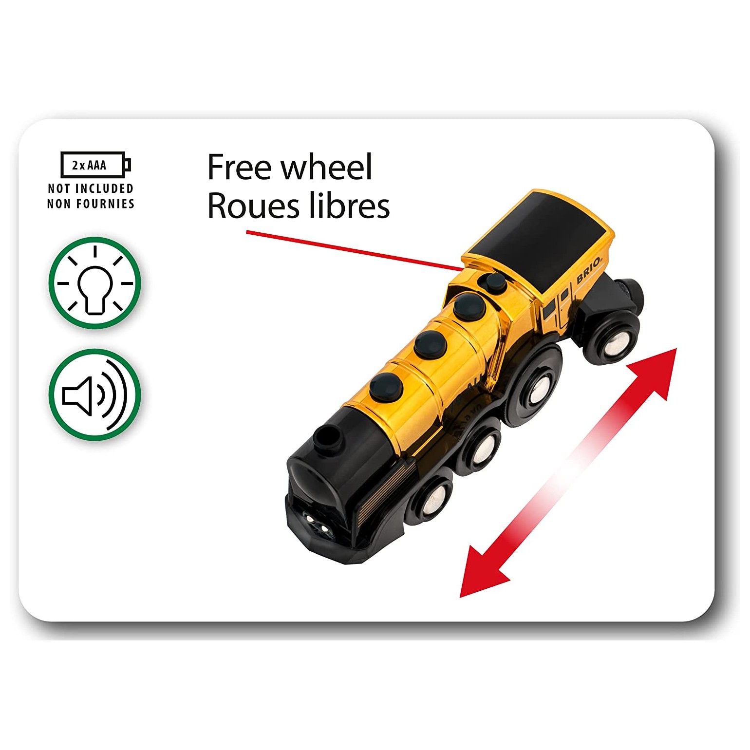 Dzięki lśniącej złotej farbie i klasycznemu dźwiękowi „ciuchci”, ta Lokomotywa robi wrażenie na wszystkich wokół!