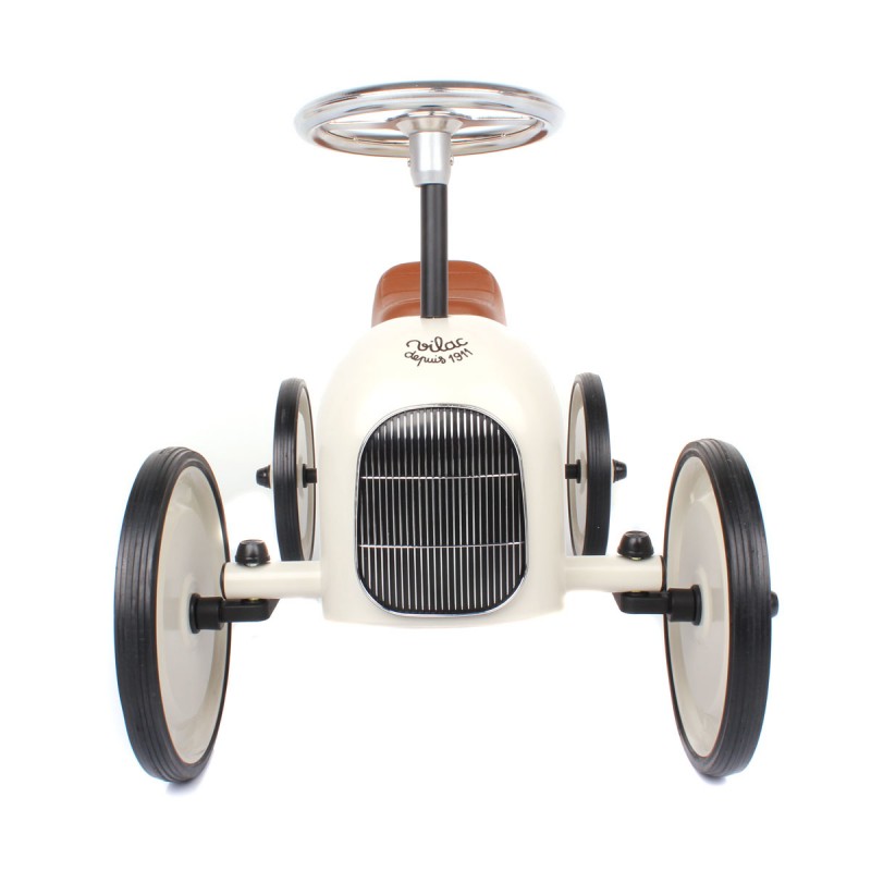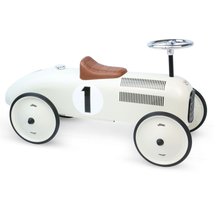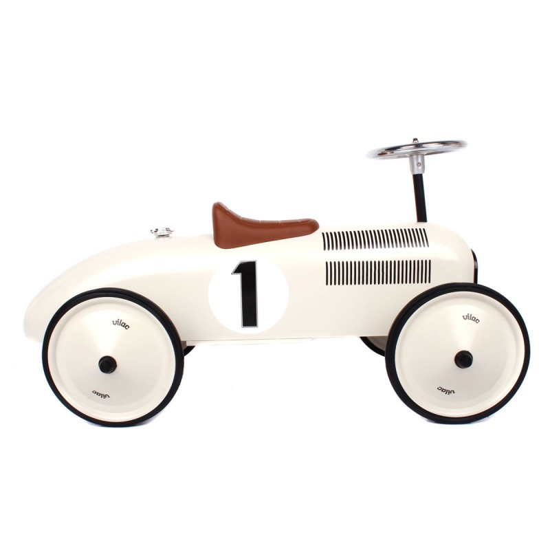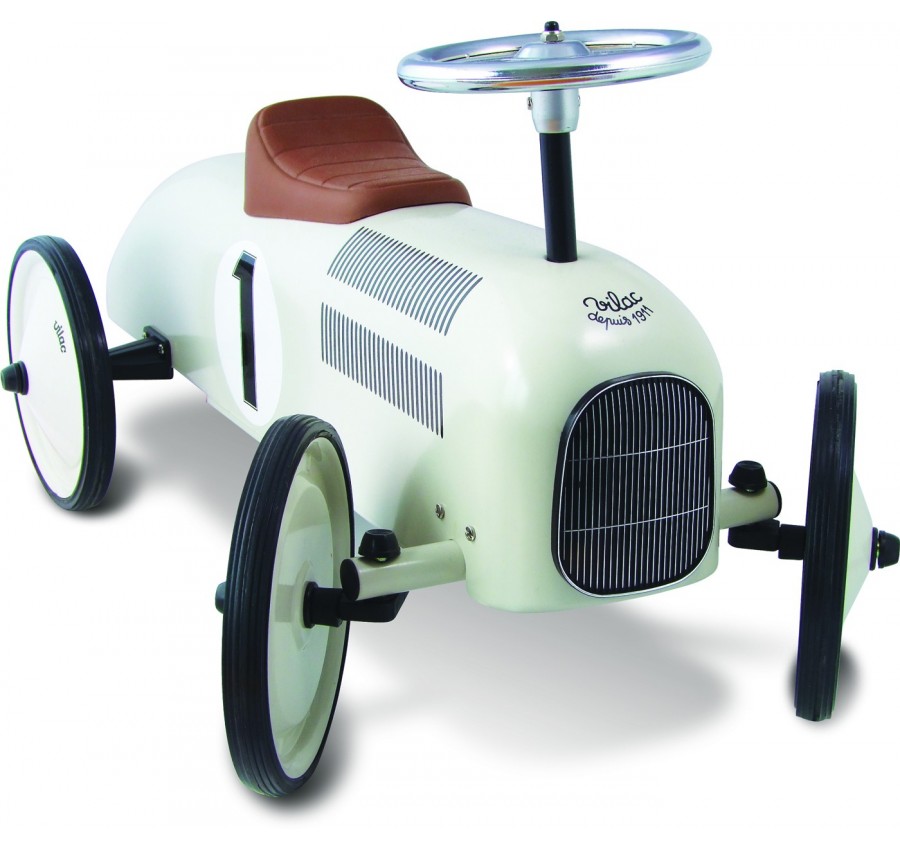 POWIADOM MNIE kiedy będzie dostępnyAuta to coś co chłopcy lubią najbardziej... Uroczy jeździk w formie retro wyścigówki to spełnienie marzeń każdego małego rajdowca. Solidna blacha i połyskująca karoseria to główne zalety jeździk:). Skrętna kierownica pozwala na wykonywanie trudnych manewrów w domu oraz na spacerze. Ogumowane koła są ciche oraz całkowicie bezpieczne dla podłogi, dzięki czemu Maluch może korzystać z jeździka w domu. Autko Vilac świetnie wkomponuje się we wnętrze jako ciekawy element dekoracyjny.