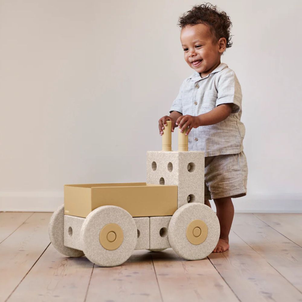 Nowy element zestawów MODU – Pchacz 3w1 – to nie tylko pomocnik, który wspomaga wczesne umiejętności chodzenia maluszka, ale również jest pełną wciągających i rozbudzających wyobraźnię możliwości zabawką, która może pełnić rolę wózka, taczki czy stołka. Dzięki lekkiej konstrukcji, dużym kółkom Pchacz jest łatwy do pchania przez najmłodszych. Pojemne i przestronne pudełko pomieści ulubione zabawki Twojego dziecka - klocki, przytulanki, lalki czy samochodziki. Kiedy dziecko podrośnie, możecie zmodyfikować Pchacz, dodając więcej bloczków albo wykorzystać go jako jeden z elementów swojej kolekcji do konstruowania i wspólnej zabawy.