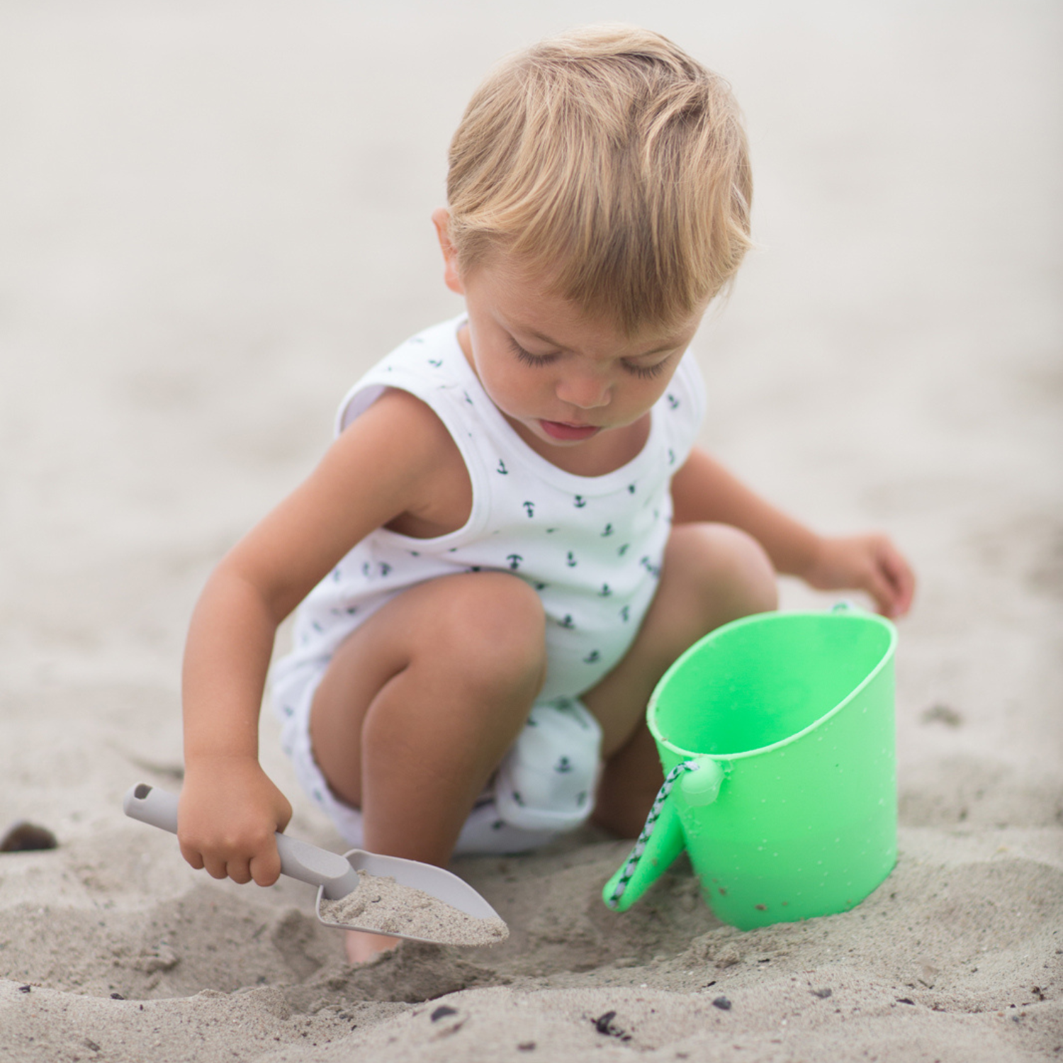 Pożegnaj się z pękniętymi plastikowymi wiaderkami i jednorazowymi plastikowymi łopatkami - zabawki na plażę i do piaskownicy Scrunch to produkt na całe życie. Silikonowe wiaderka nie tylko mogą być w 100% poddane recyclingowi, ale również możesz zrolować je do bardzo małych rozmiarów i zabrać ze sobą na wakacje. Silikon z którego wykonane jest większość zabawek Scrunch jest trwały, elastyczny, odporny na plamy, łatwy do czyszczenia i jest w stanie wytrzymać ekstremalne temperatury otoczenia.