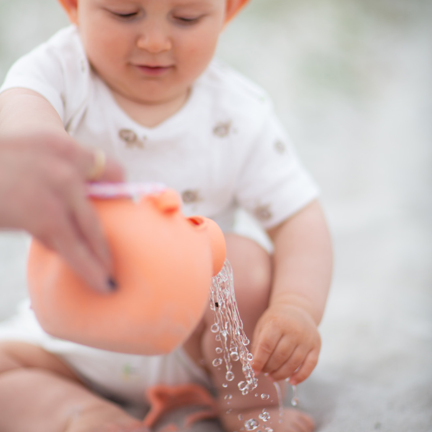 Silikonowe zabawki to doskonałe rozwiązanie w podróży. Są elastyczne i kompaktowe - konewkę wystarczy zgnieść i wrzucić do walizki! Super rozwiązanie bez konieczności kupowania kolejnego, plastikowego zestawu plażowego.